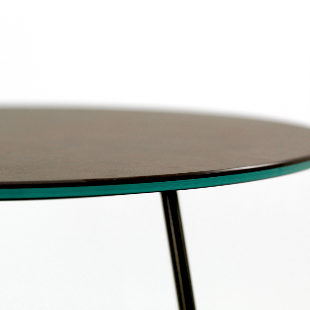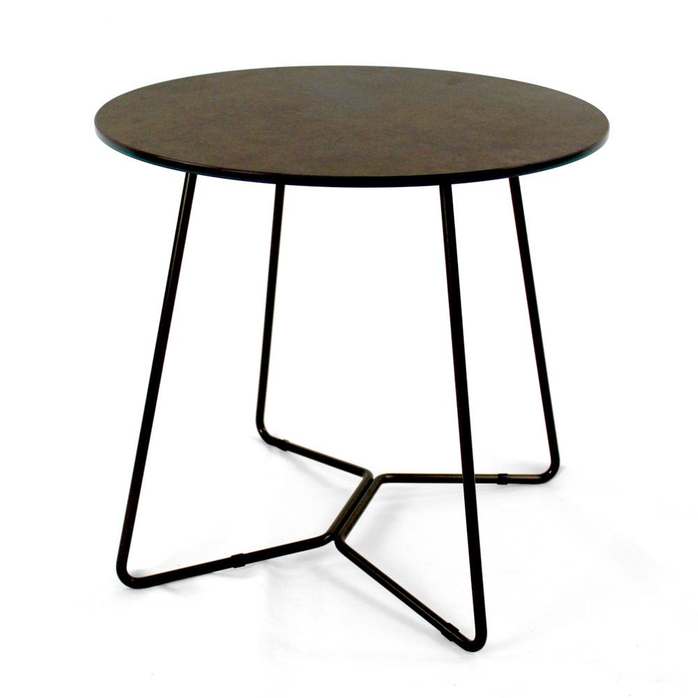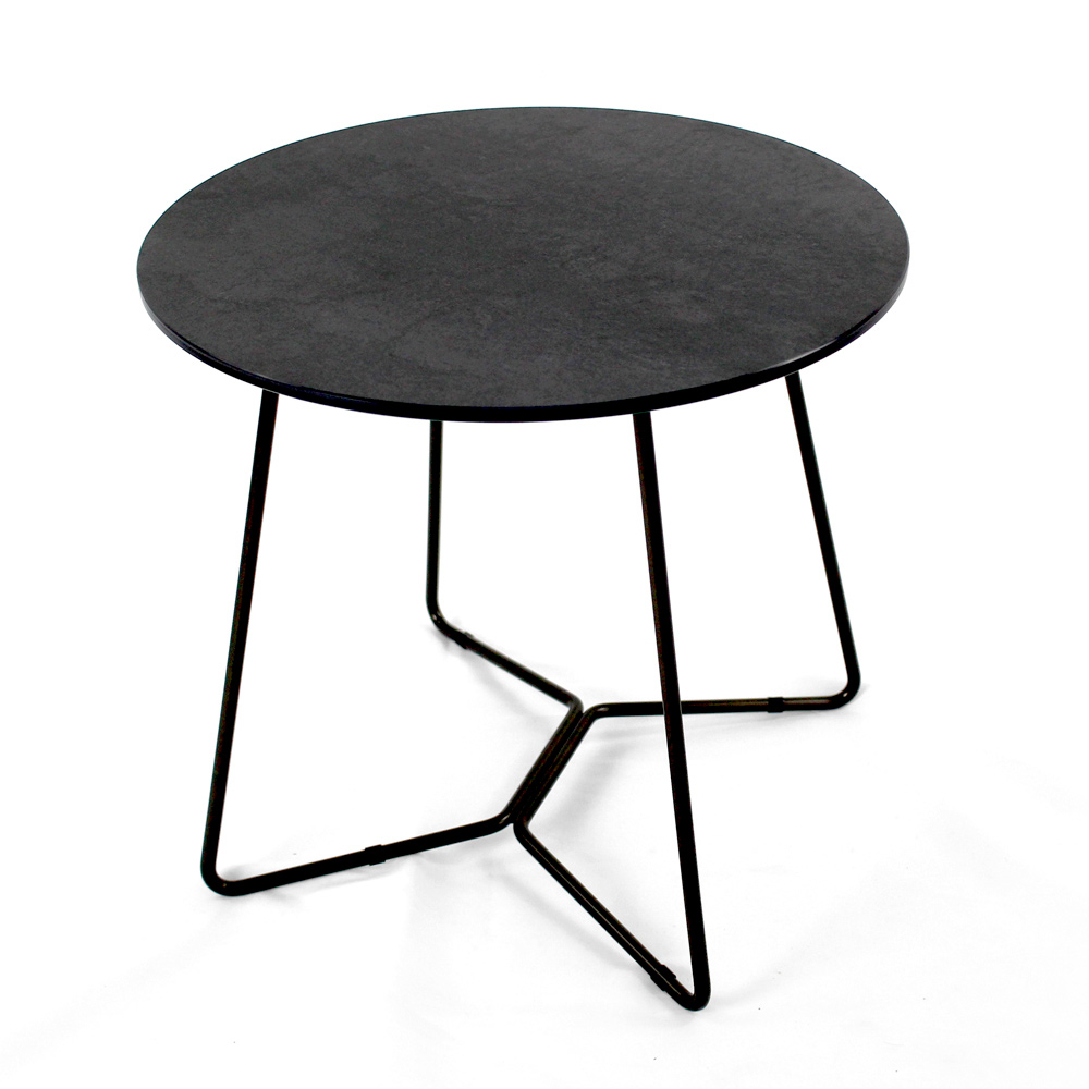 Okrągły stolik kawowy z malowaną stalową podstawą i blat z kamionki porcelanowej.