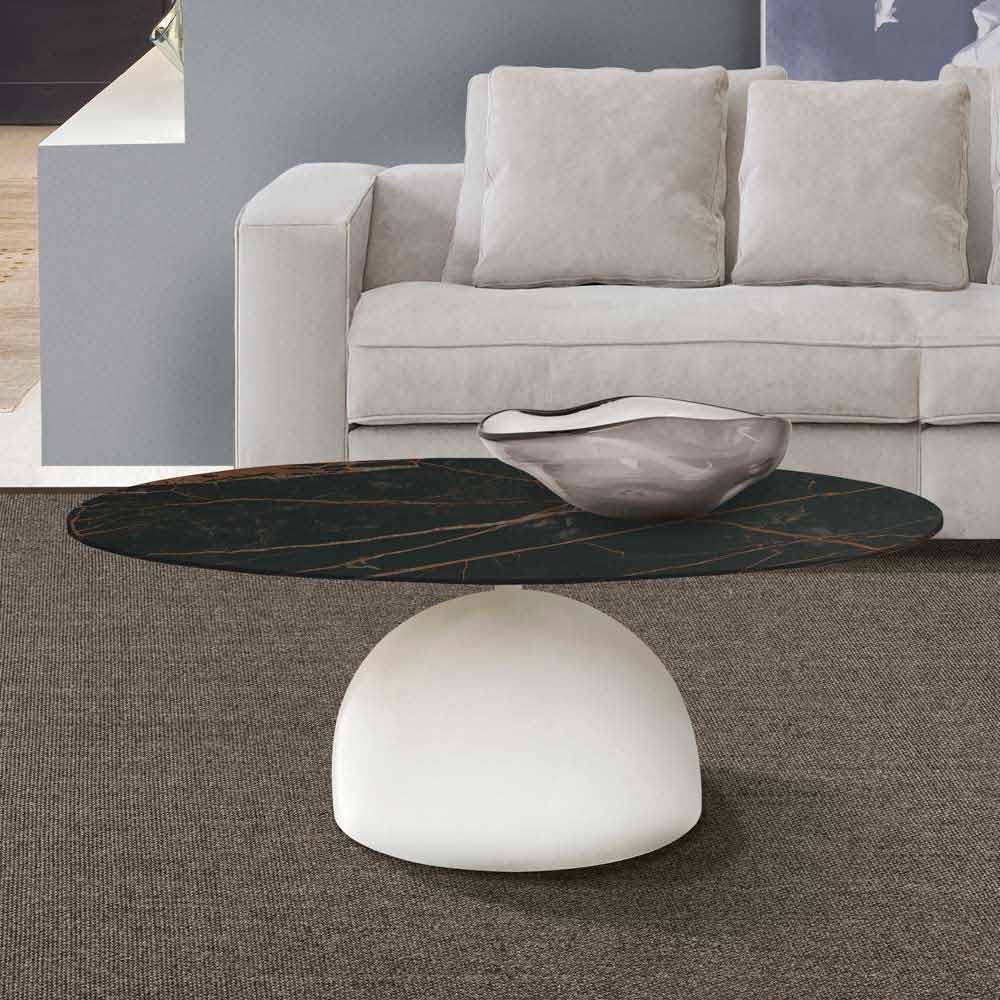 Stolik kawowy z ceramicznym blatem i metalową podstawą, wysokiej jakości Made in Italy.