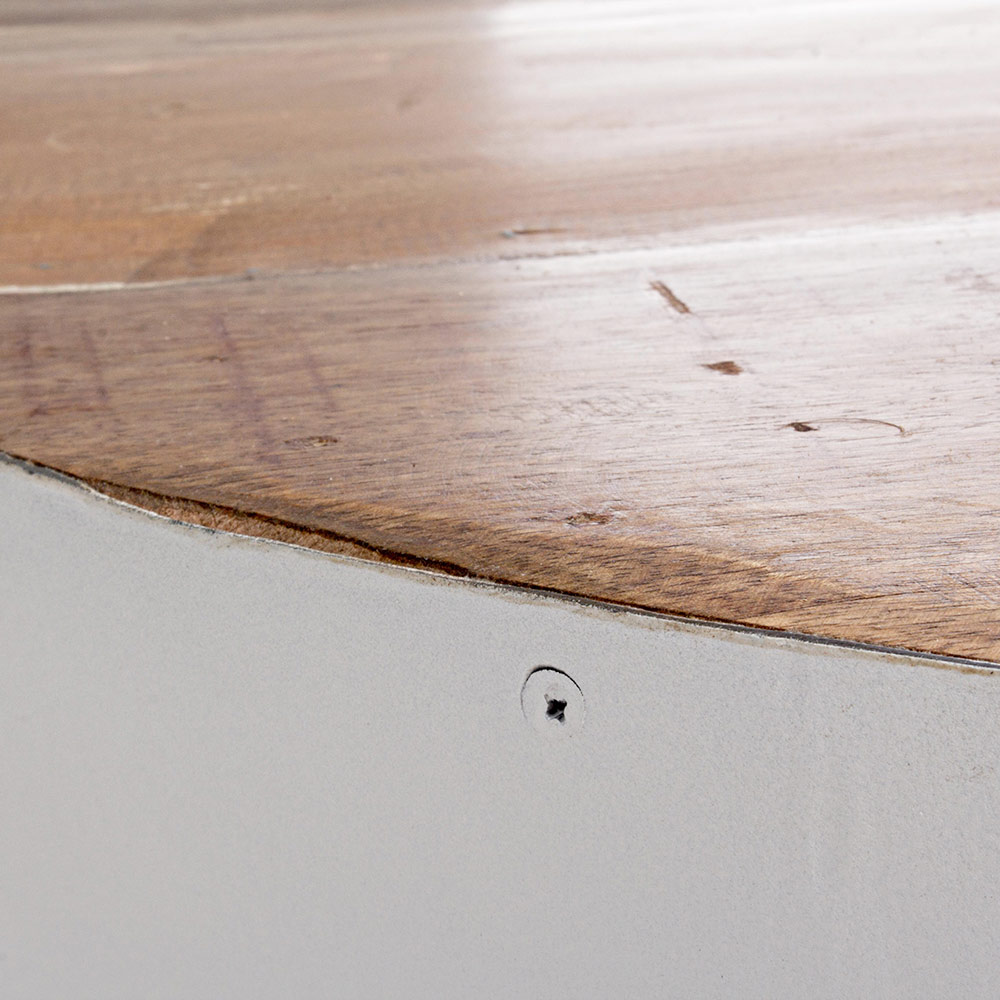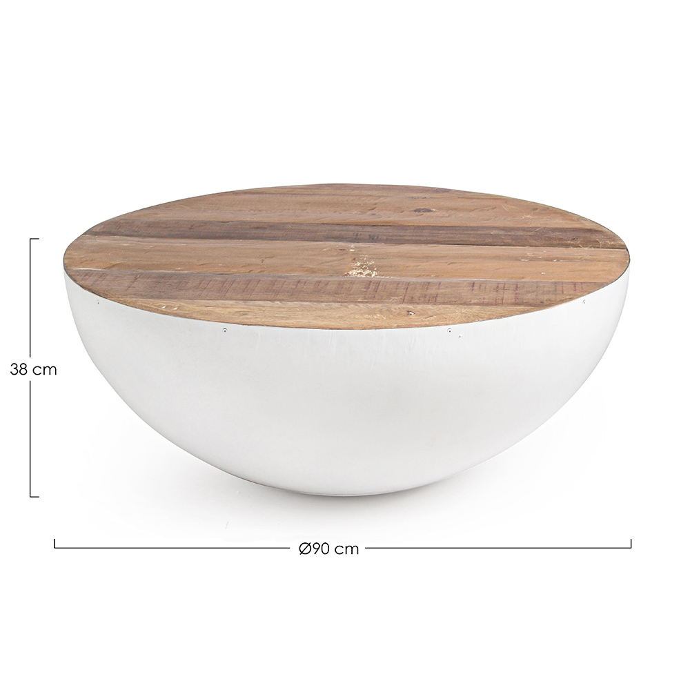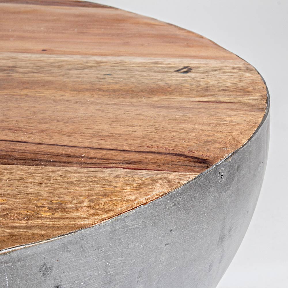 Okrągły stolik kawowy z drewna i stali z recyklingu, 2 kolory i 2 rozmiary.