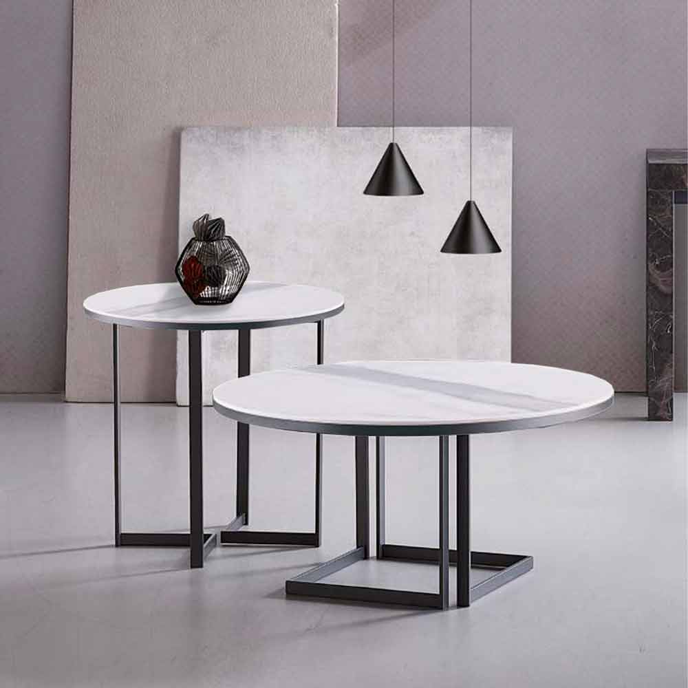 Nowoczesny stolik kawowy z lakierowanego metalu z blatem z kamionki z efektem marmuru, wysokiej jakości Made in Italy.