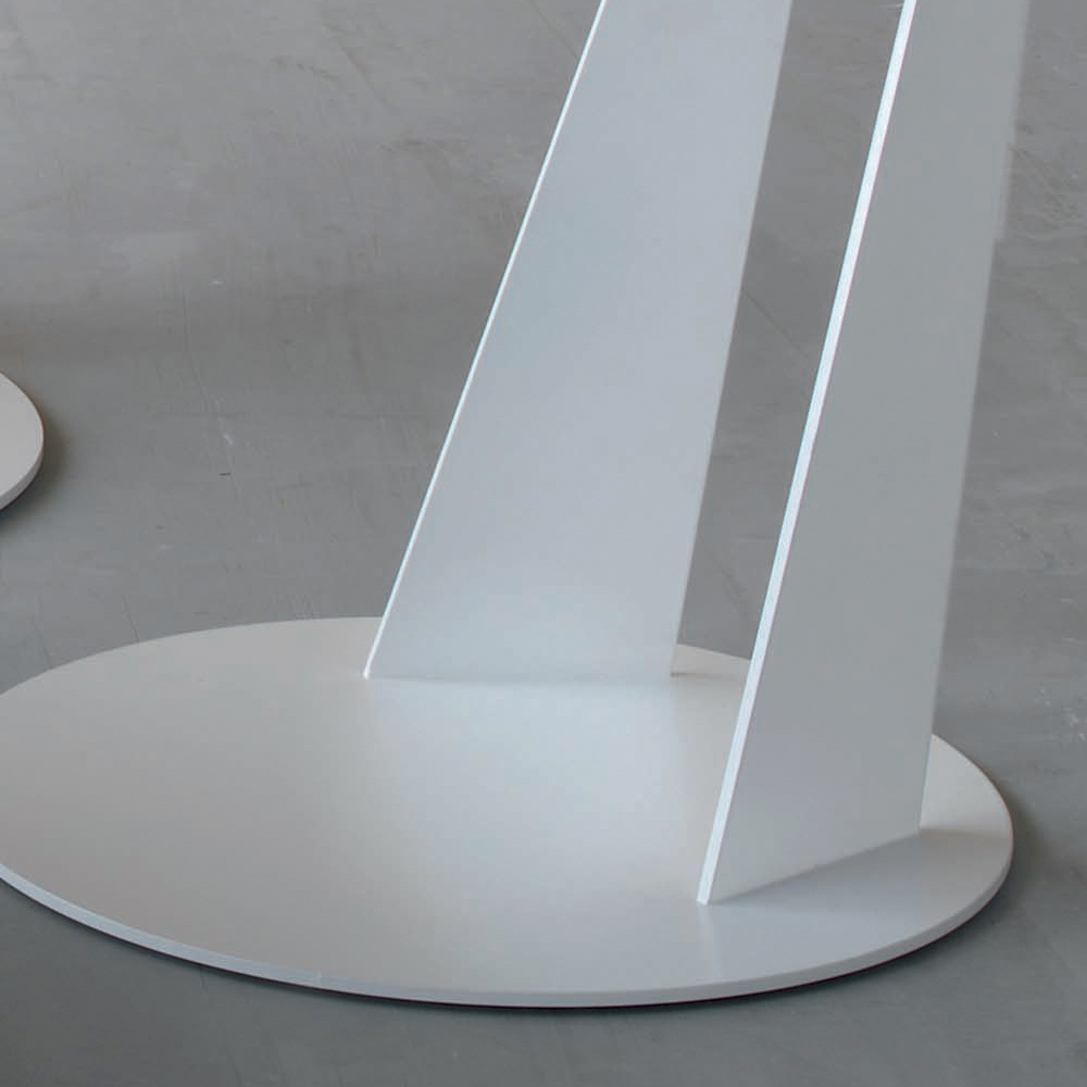 okrągły stolik kawowy ma pomalowaną proszkowo wytłaczaną białą