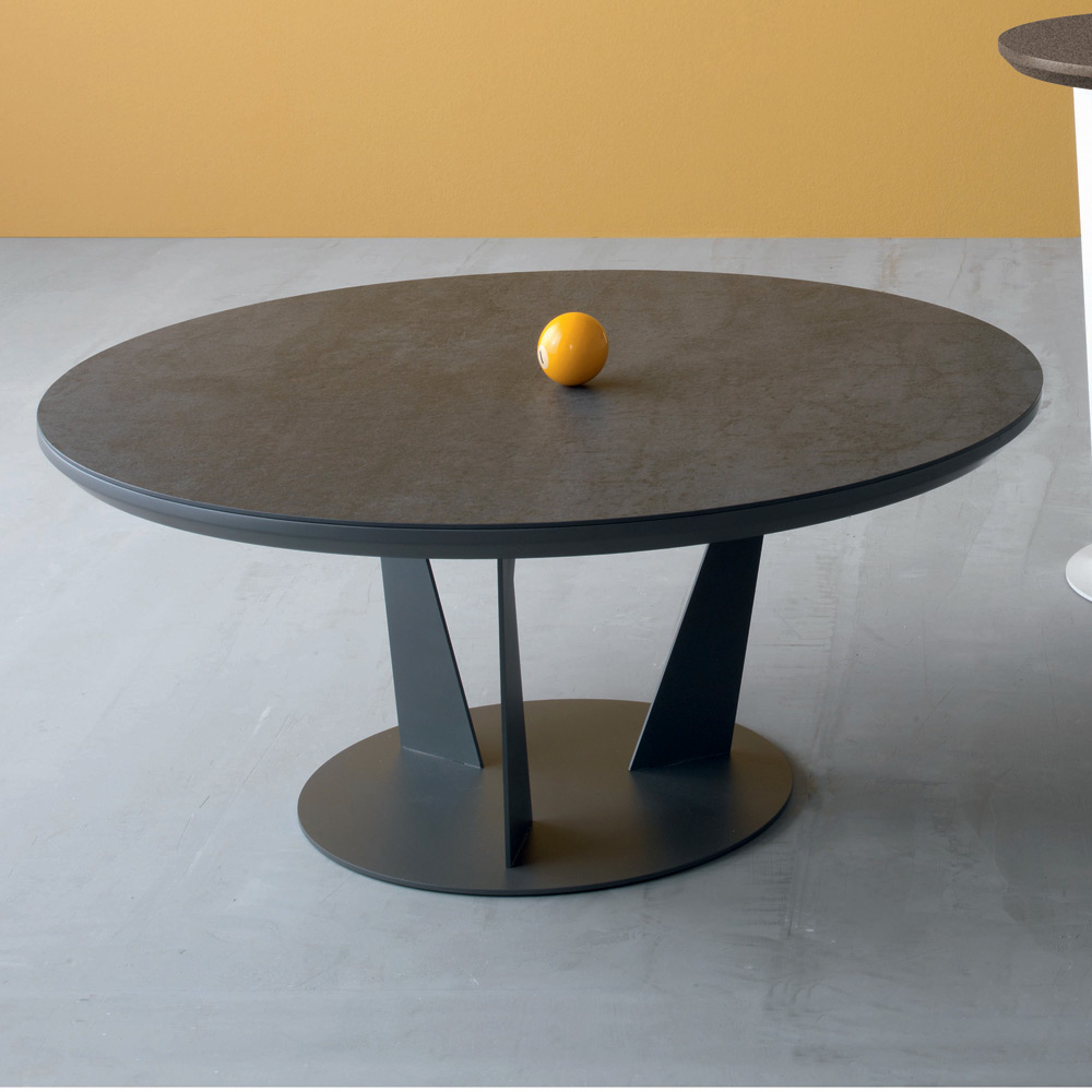 Okrągły stolik kawowy z pochyłym blatem metalowo-ceramicznym, 3 rozmiary wyprodukowany we Włoszech.