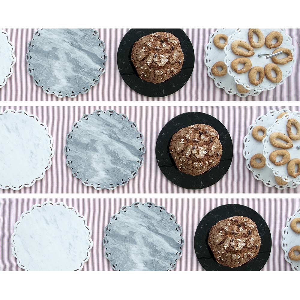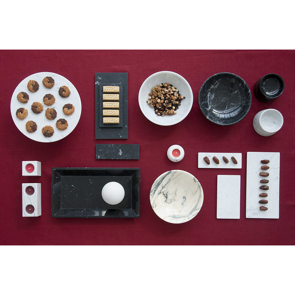 Biały marmur Carrara używany do wytwarzania tych produktów jest dostarczany z kamieniołomu Poggio Silvestre, źródła marmuru pierwszej jakości sklasyfikowanego od ubiegłego wieku, podczas gdy czarny marmur Marquinia jest wydobywany z hiszpańskich kamieniołomów i charakteryzuje się nieregularnymi żyłkami koloru białego lub białego. jasnoszary, które nadają marmurowi oryginalny i nowoczesny wygląd.