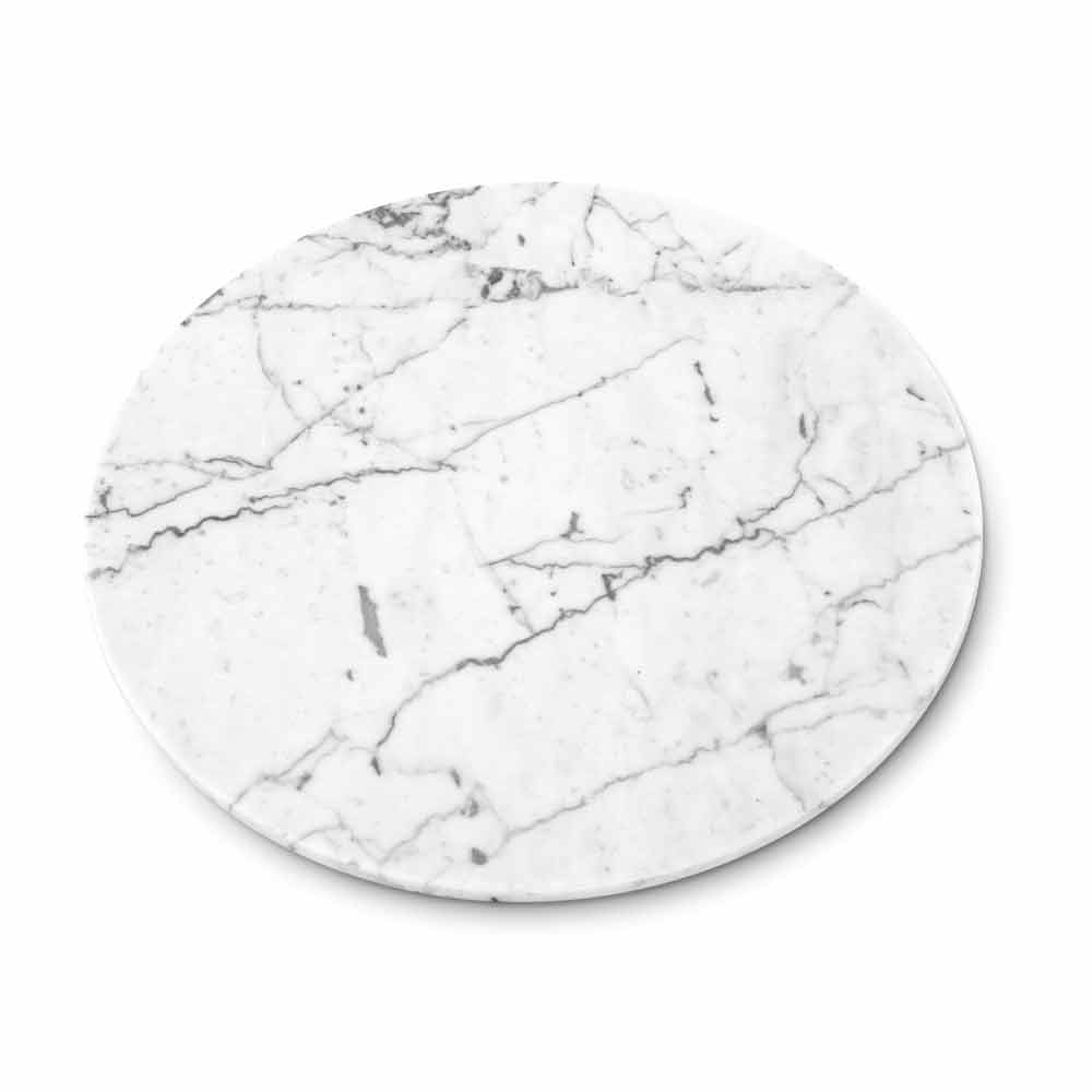 Elegancki, nowoczesny okrągły talerz serów wykonany z 2 marmurów: białego marmuru Carrara i czarnego marmuru Marquinia. Wykonany z wysokiej jakości szlachetnego marmuru jest wyjątkowym kawałkiem, ponieważ każdy użyty blok marmuru różni się od pozostałych żyłkami i odcieniami.