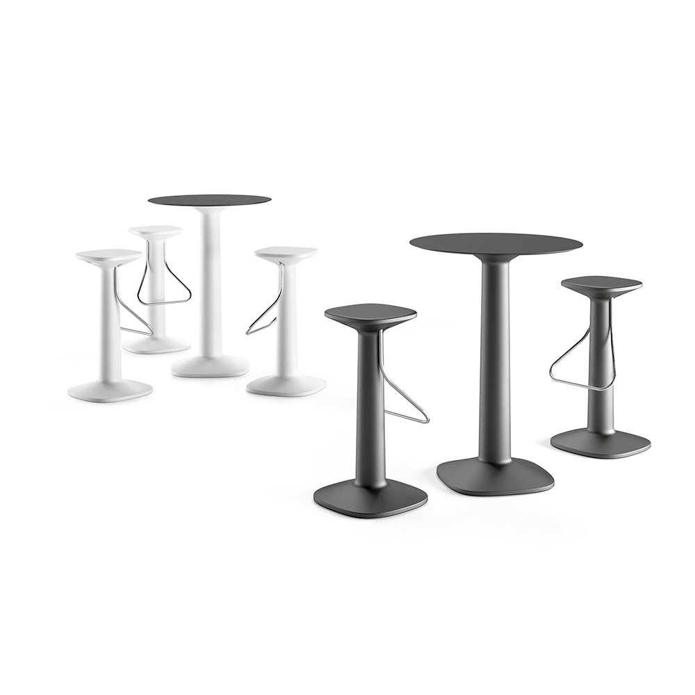 polietylenu w matowym wykończeniu, co zapewnia wszechstronność i odporność na ciepło, słońce i wstrząsy, a jednocześnie sprawia, że produkt doskonale sprawdza się w warunkach zewnętrznych. Idealny w połączeniu z wysokimi stołkami, aby uzupełnić wyposażenie wnętrz o współczesnym i minimalistycznym designie, nadając pomieszczeniu charakter i osobowość.