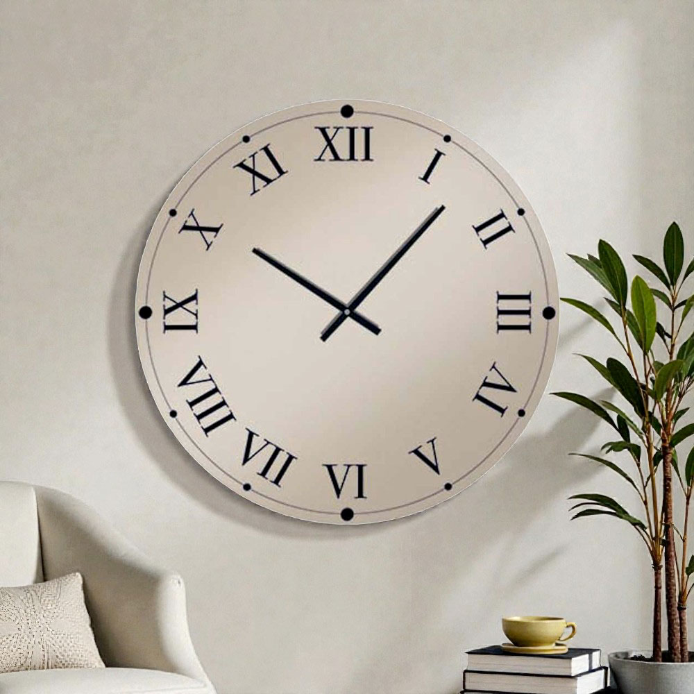 Okrągły zegar ściennywykonany we Włoszech z lustrzanego szkłakryształowego z cyframi rzymskimi i czarnymi wskazówkami. Zastosowanie lustrzanego wykończenia sprawia, że mebel ten stanowi idealne połączenie lustra i prawdziwego zegara. Pełni niezwykle użyteczną funkcję, a jednocześnie stanowi wspaniałe źródło światła, pomagając optycznie powiększyć przestrzeń. Jego design charakteryzuje się elegancją i esencją , co sprawia, że jest to przedmiot o klasycznym charakterze, idealny do najróżniejszych nowoczesnych wnętrz, nadający meblom osobisty i kreatywnycharakter oraz zwiększający ich wartość estetyczną.