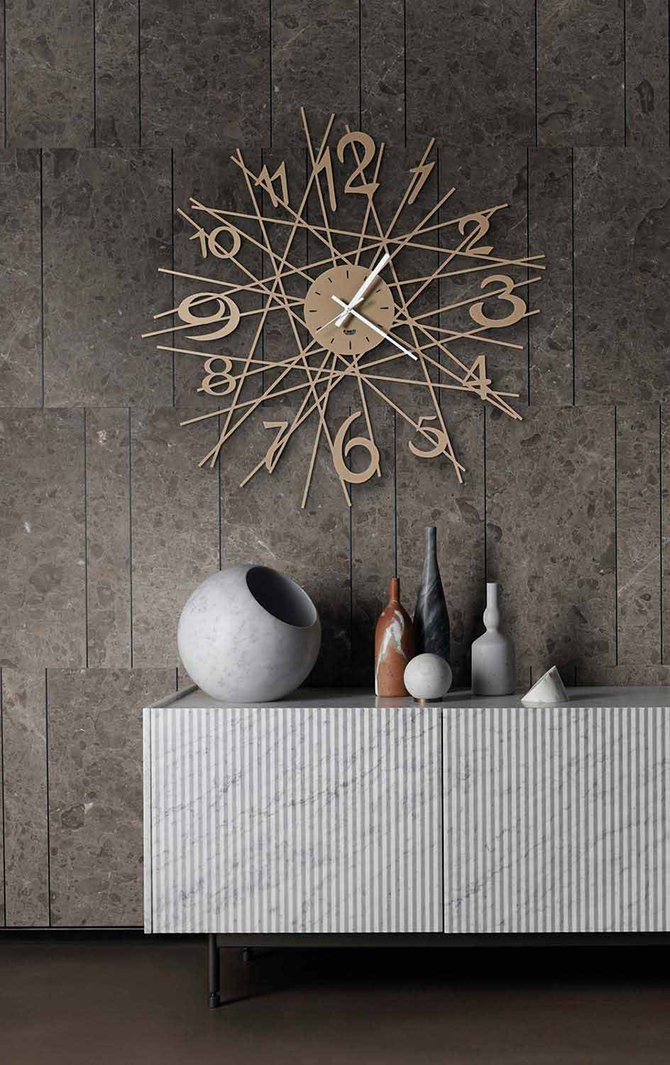 zegar ścienny charakteryzuje się geometrycznym wzorem oraz prostymi i czystymi liniami, które sprawiają, że produkt jest elegancki i wyrafinowany, ale jednocześnie idealnie nadaje się do nadania osobowości i charakteru otoczeniu.