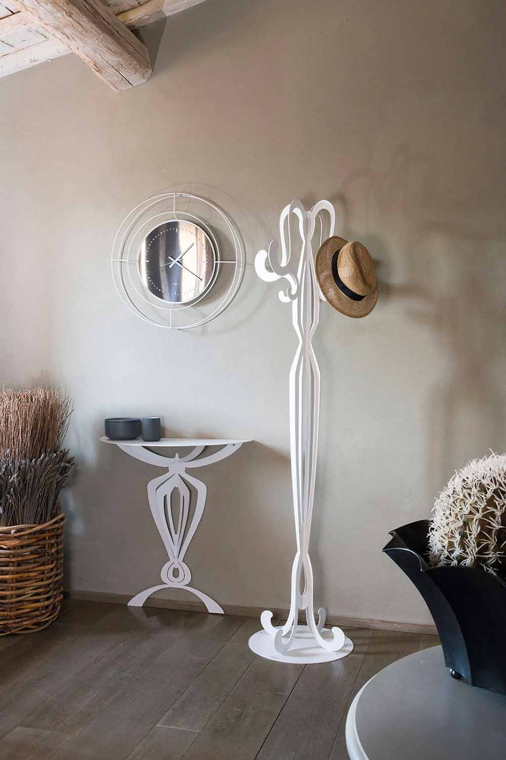 Wieszak z ośmioma haczykami z podłogi wykonanymi ręcznie we Włoszech z białego żelaza, brązu, błota lub przezroczystego złota.