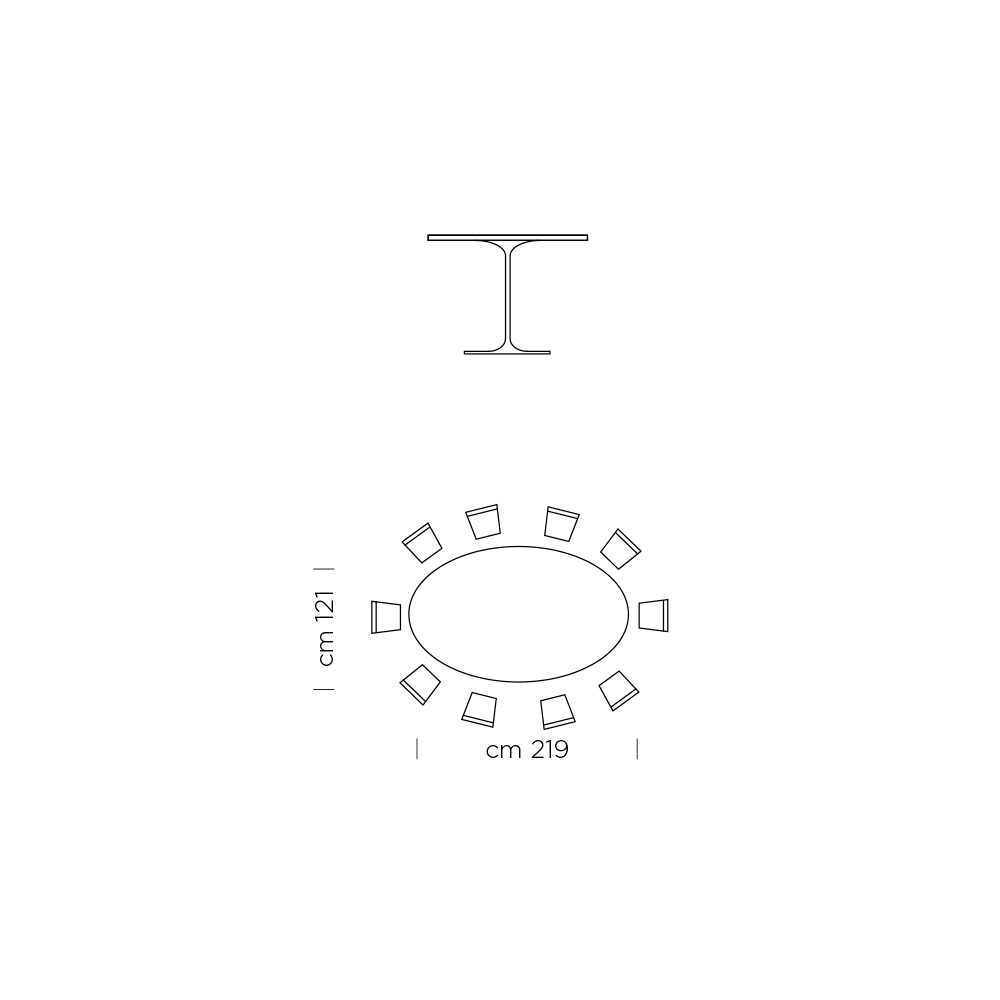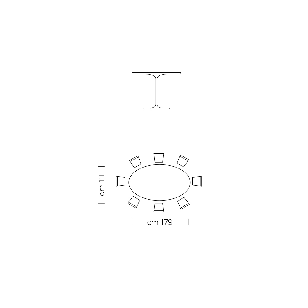 niezwykły owalny kształt blatu i szczególny kształt podstawy, cechy, które wzbogacają i uzupełniają jego estetykę, tworząc