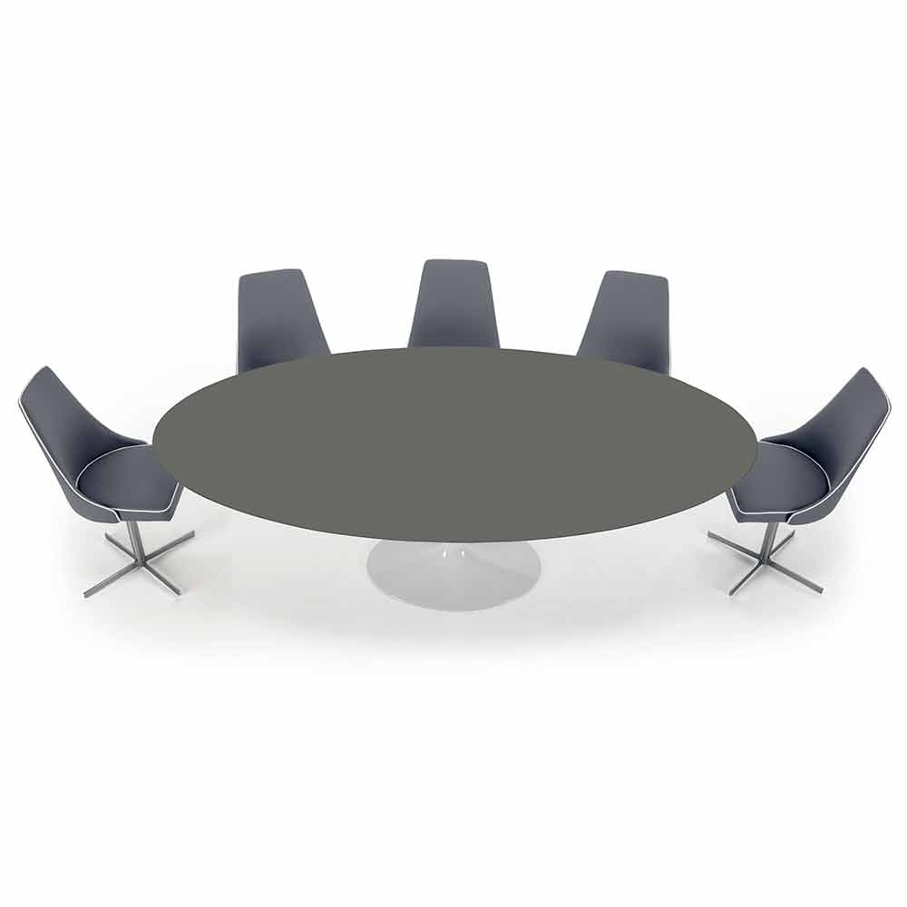 Owalny stół do jadalni wyprodukowany we Włoszech z blatem Fenix i aluminiową podstawą.