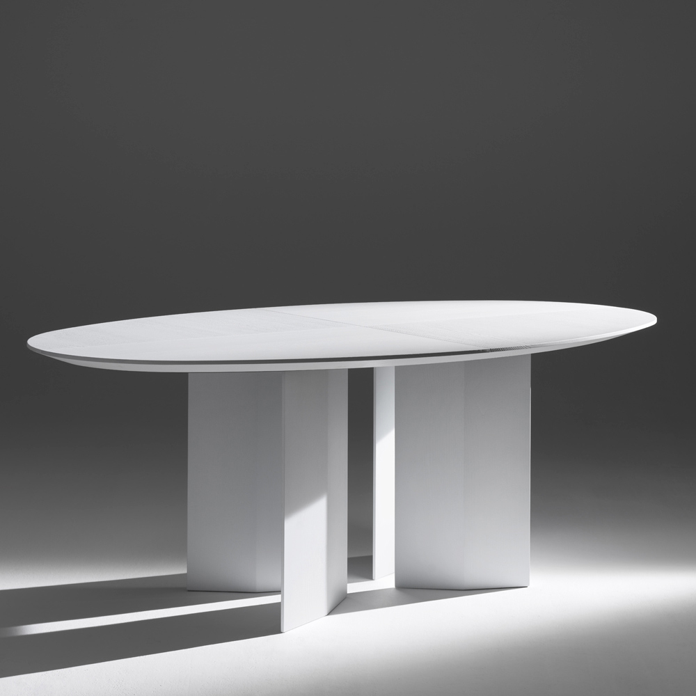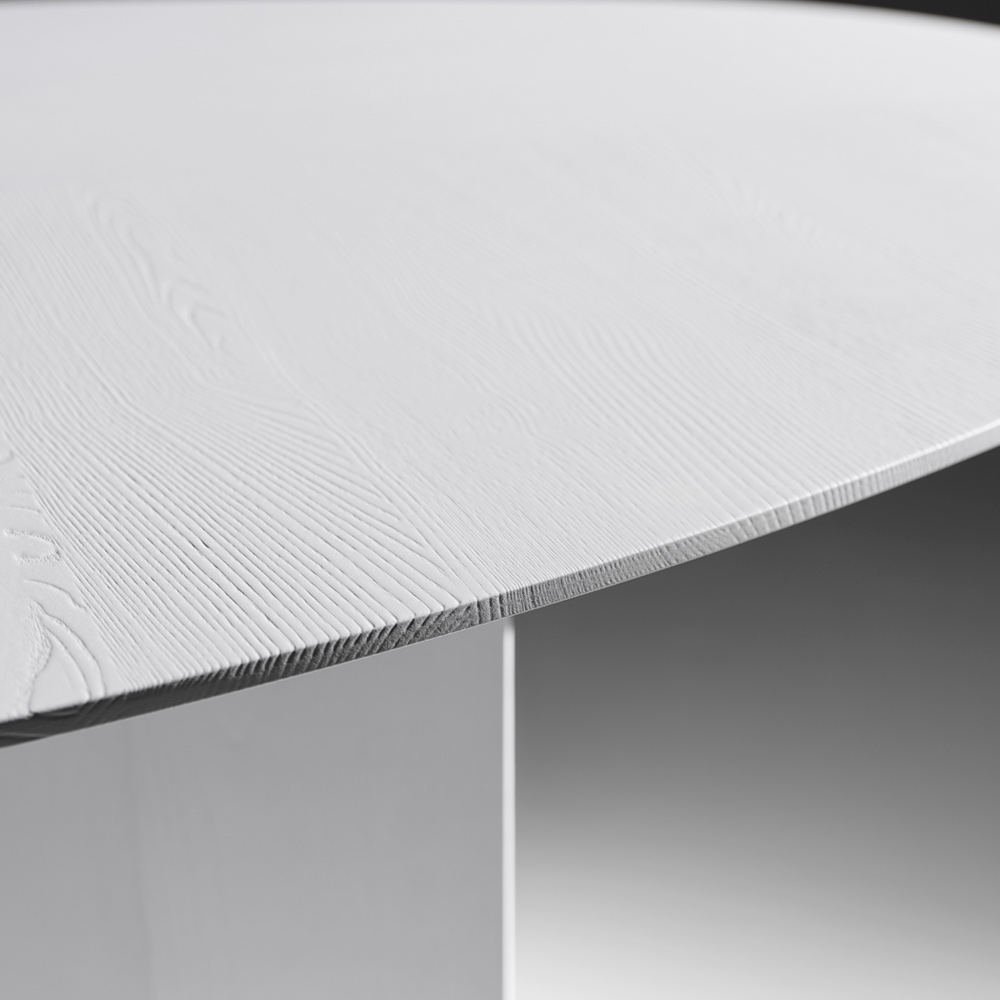 Wykonany z poddanej obróbce cieplnej sklejki jesionowej , stół podkreśla naturalne usłojenie drewna, podkreślając jego fakturę i głębię barw. Dostępny jest również w kolorze czarnym lub białym , co czyni go na tyle wszechstronnym, że pasuje do różnorodnych stylów, od minimalistycznego po wyrazisty i graficzny.
