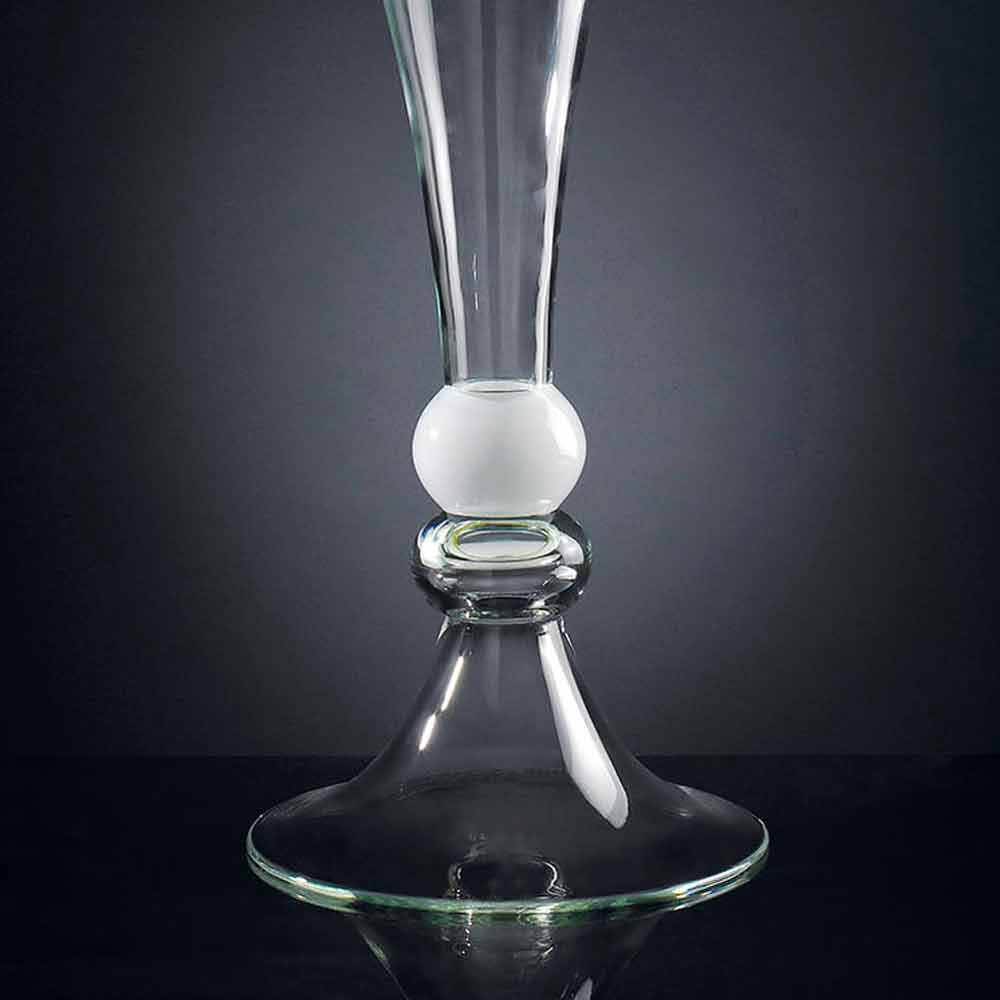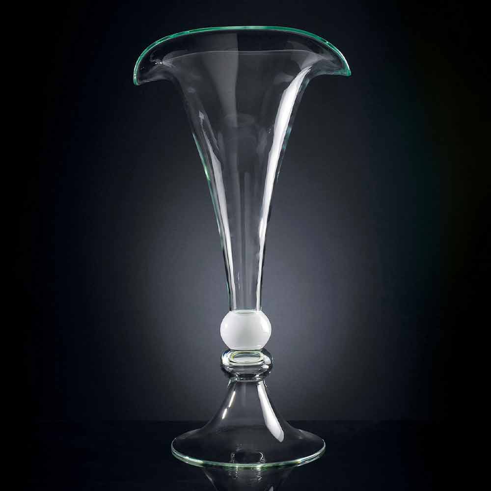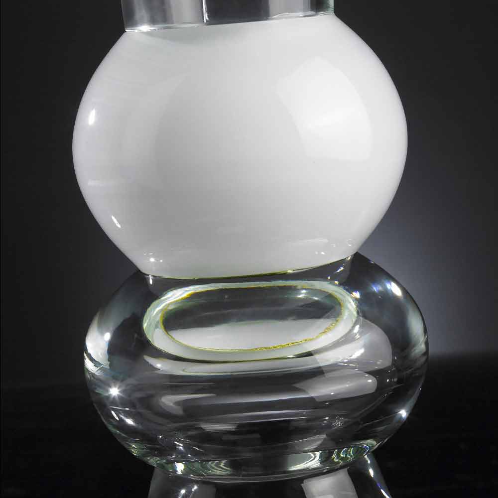 Dekoracyjny wazon do wnętrz z przezroczystego szkła z białą szklaną kulą wykonany ręcznie w procesie 100% Made in Italy . Jego osobliwość jest dokładnie reprezentowana przez produkcję rzemieślniczą, która zwiększa jego wartość i wartość, aby dać życie ekskluzywnemu wynikowi wysokiej jakości, a także wyrafinowanemu i klasycznemu dopełnieniu , cechom nadanym przez ponadczasową elegancję szkła. Idealny projekt dla najróżniejszych środowisk, od wyposażenia domu po hotele, restauracje, powierzchnie kontraktowe, spa, ale także jako oprawa imprez i wesel.