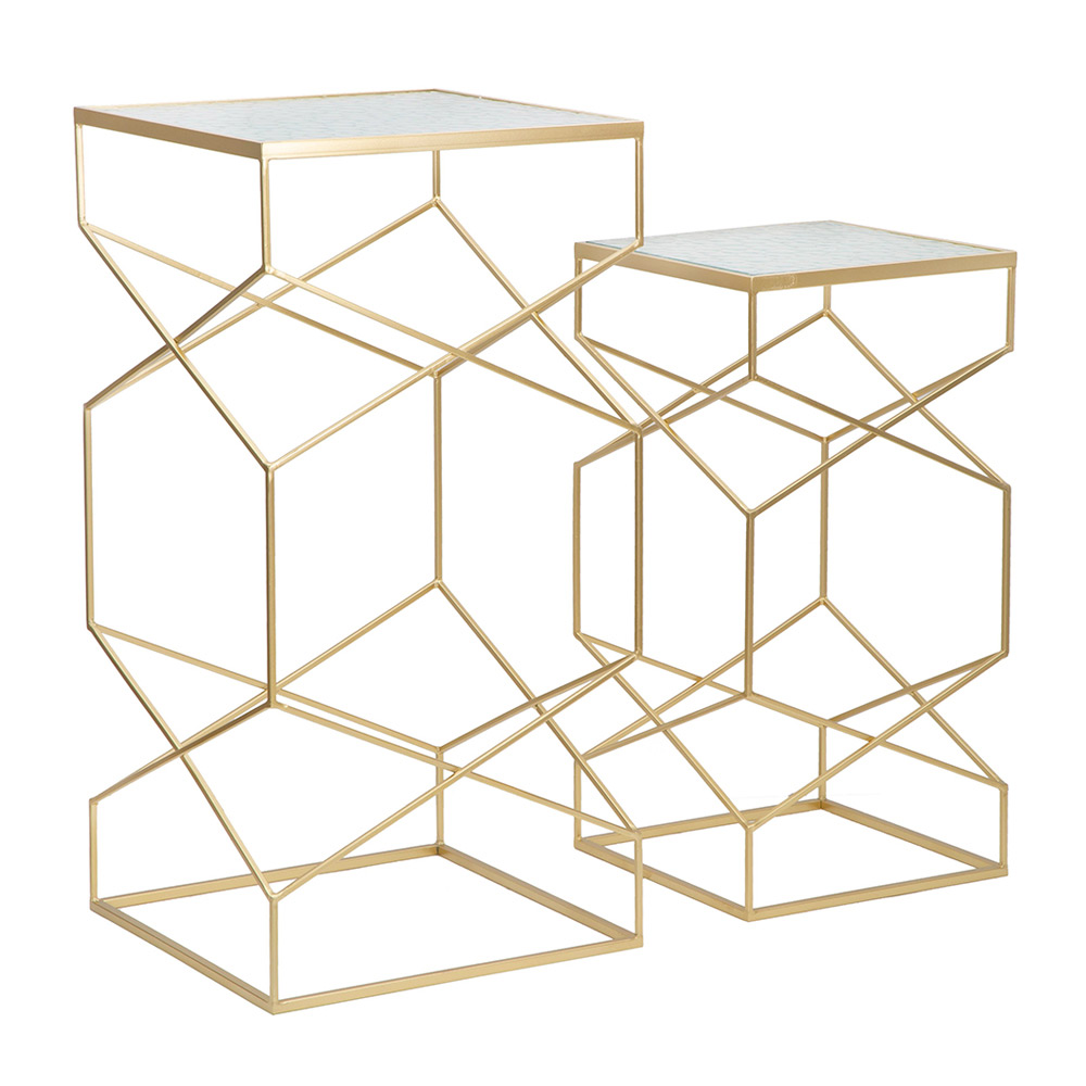 Nad tą elegancką siecią powierzchnie nośne oferują gładką i świetlistą powierzchnię, tworząc fascynujący kontrast z przewiewną i otwartą strukturą. Niezależnie od tego, czy użyte razem tworzą skoordynowaną kompozycję, czy też umieszczone osobno jako indywidualne punkty centralne , te stoliki boczne podnoszą estetykę każdej przestrzeni.