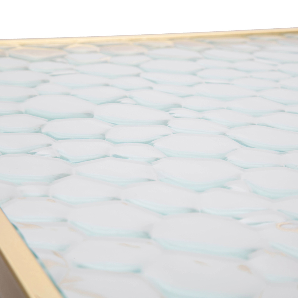 Te stoliki kawowe to prawdziwe klejnoty designu, które łączą artystyczną finezję z solidnością konstrukcji . Ich złota metalowa podstawa tworzy siatkę geometrycznych linii, które splatają się w wizualny balet kształtów i objętości, tworząc trójwymiarowy efekt niemal rzeźbiarski.