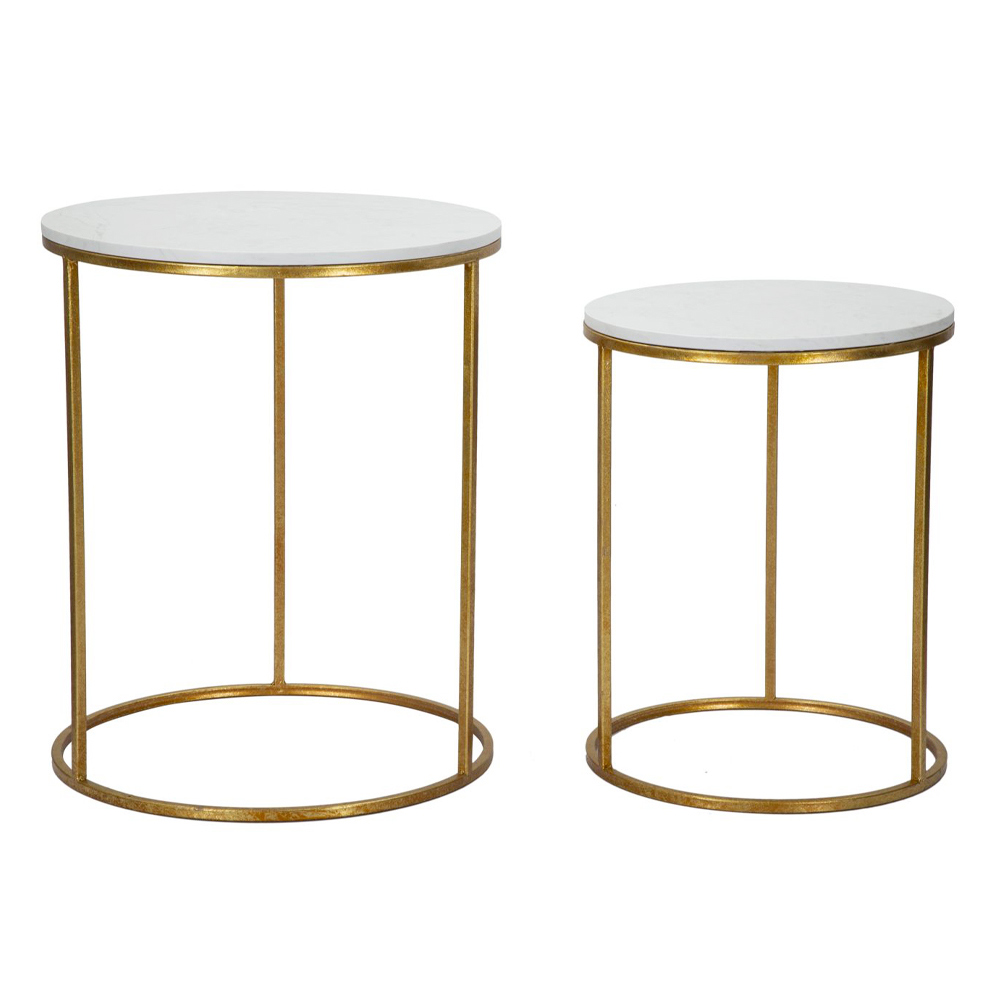 Stoliki kawowe ze złotym wykończeniem żelaznej konstrukcji i okrągłym blatem z