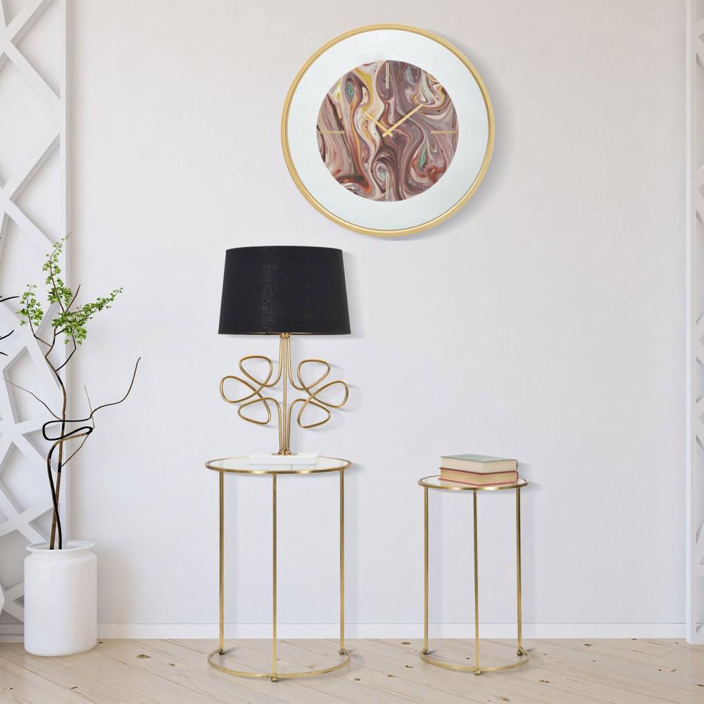 Okrągłe stoliki kawowe z żelazną konstrukcją o złotym wykończeniu i