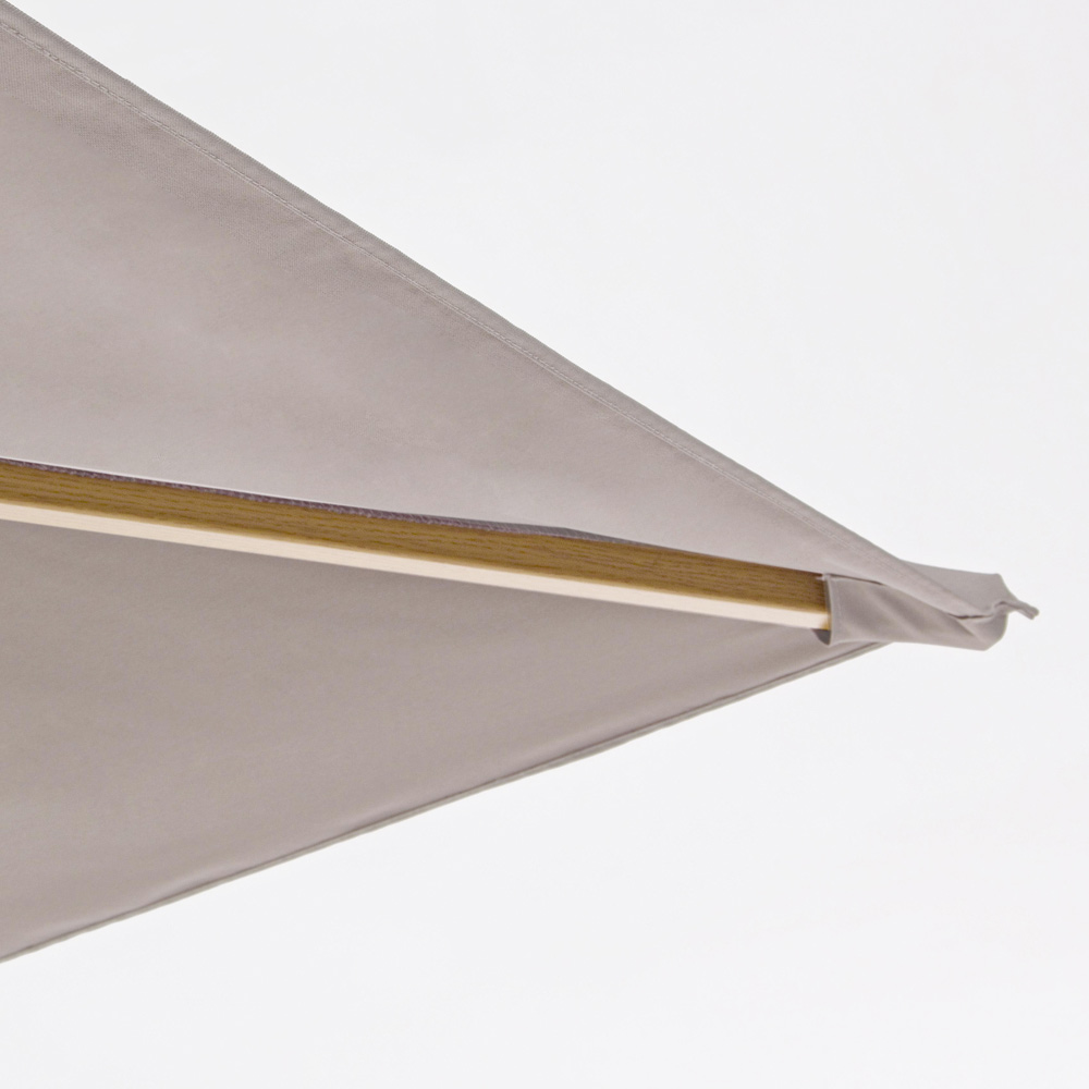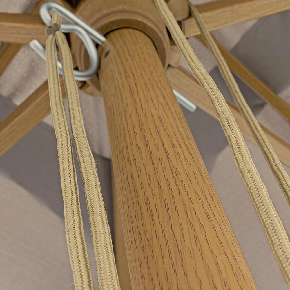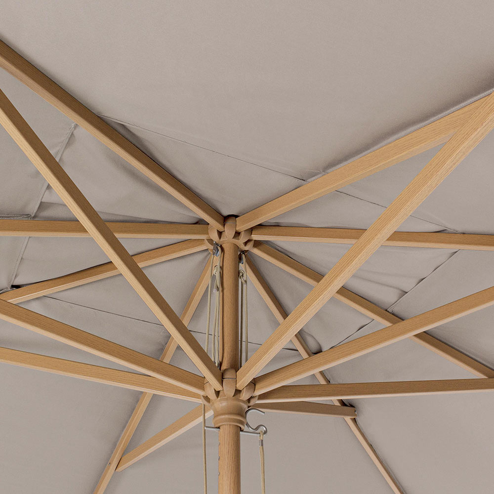 Aluminiowa konstrukcja z wykończeniem imitującym drewno. Plastikowa korona. Słup Ø48 x 1,8 mm. 8 żeber 20x30 mm. Arkusz poliestrowy 235 gr / m2.