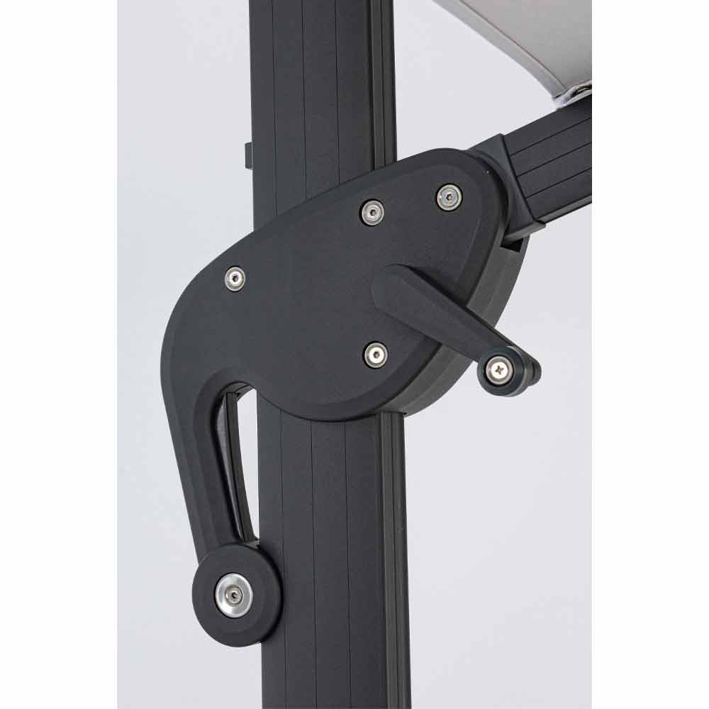 Parasol zewnętrzny 4x4 z szarego poliestru i antracytowego aluminium.