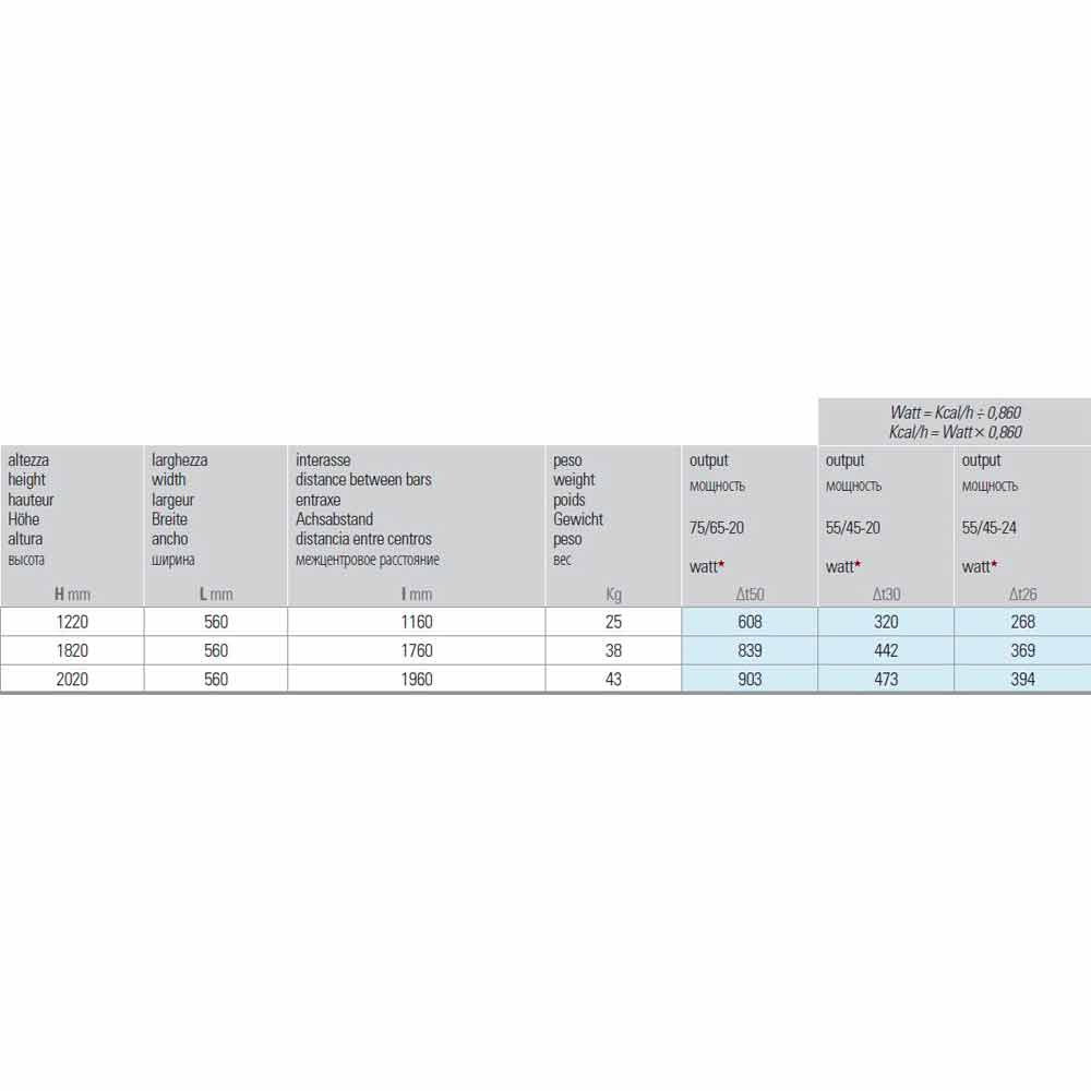 Dostępne w różnych rozmiarach *:- Wys. 1220 x dł. 560 x wew. 1160 mm x moc wyjściowa w (Δt50 *) 608; Wydajność w (Δt30 *) 320; Wydajność w (Δt26 *) 268