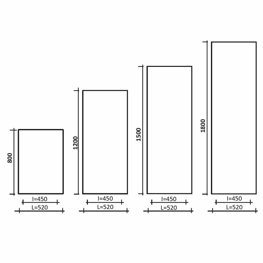 Dostępne w różnych rozmiarach *:- Wys. 800 x dł. 520 x wew. 450 x P 65 mm x Moc wyjściowa w (Δt50 °) 450; Wydajność w (Δt30 °) 230; Wydajność w (Δt26 °) 195