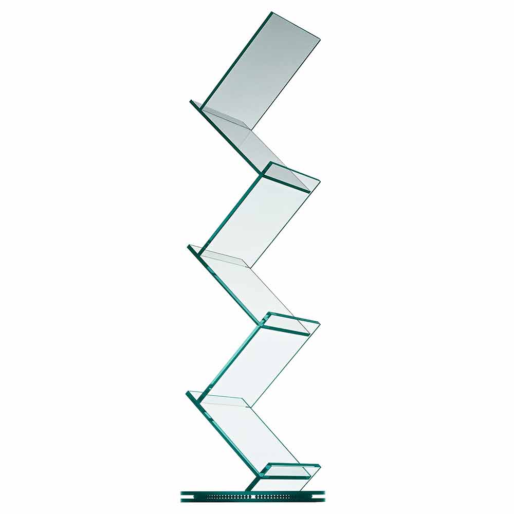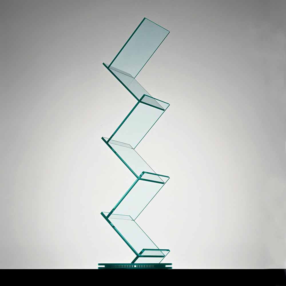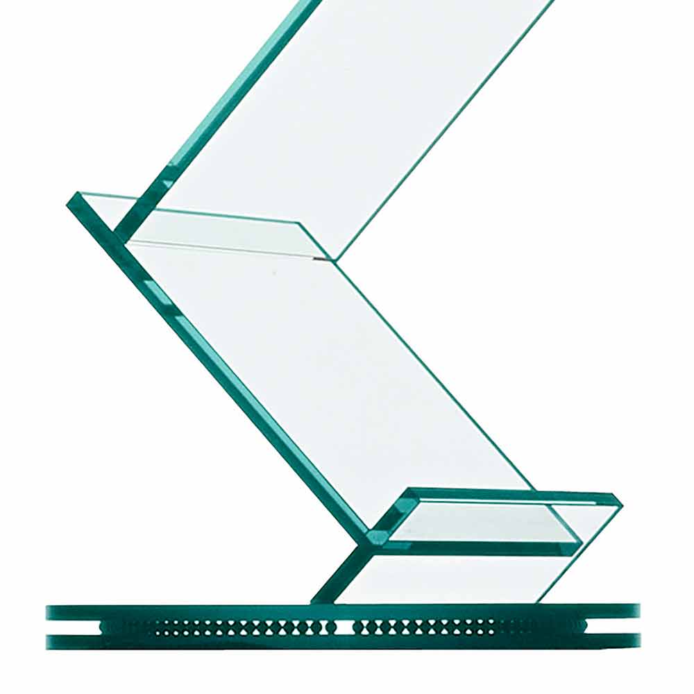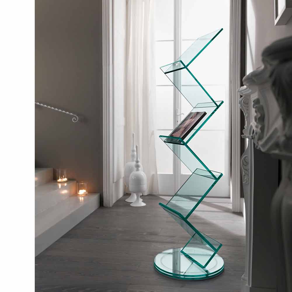 Regał na czasopisma charakteryzuje się zdecydowanym i eleganckim designem w całości wykonanym z przezroczystego szkła.