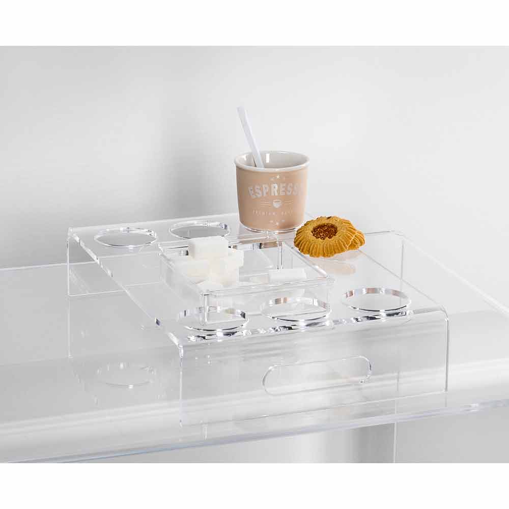 2 przezroczyste tace z pleksi na kawę na 6 lub 8 szklanek, wykonane we Włoszech.