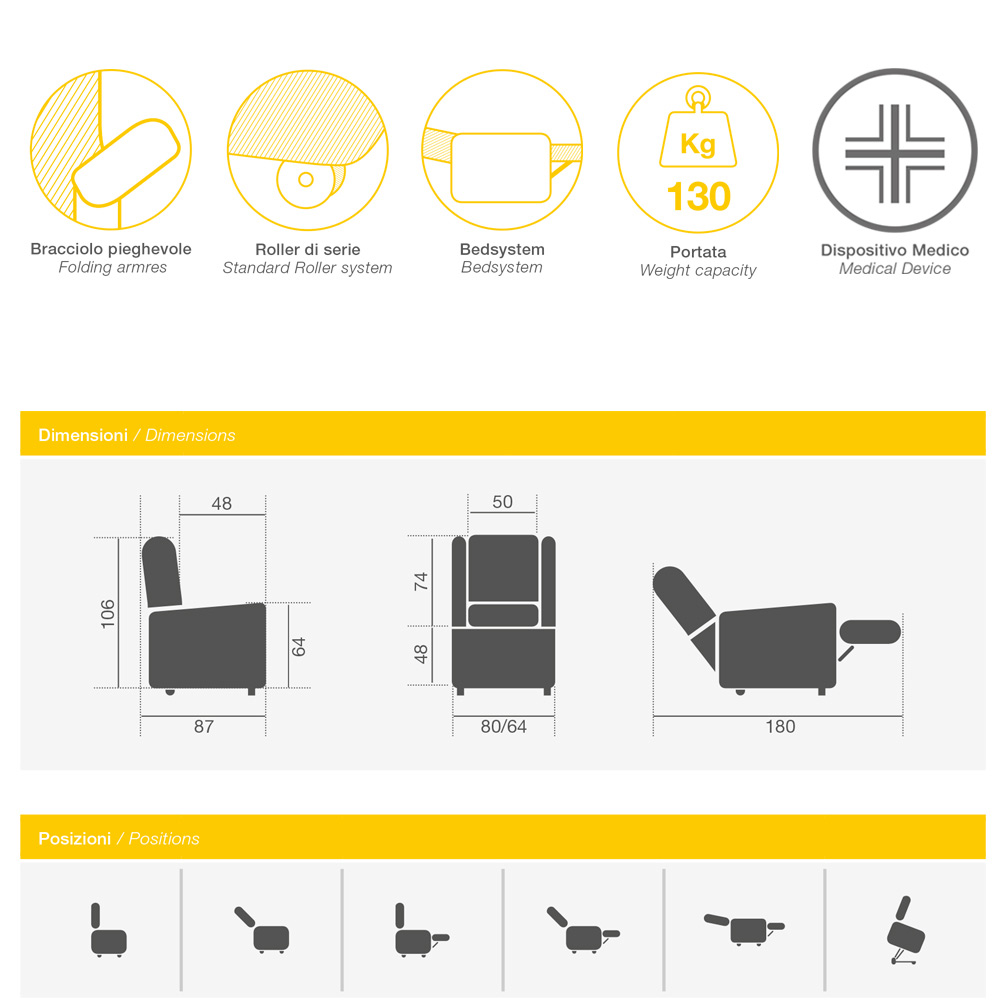 Fotel z 2 silnikami z niezależnym ruchem podnóżka i oparcia , posiadający następujące funkcje:
