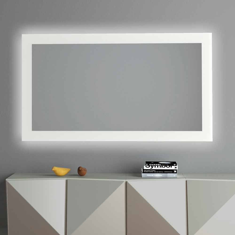 Prostokątne, podświetlane lustro ścienne z piaskowaną ramą Made in Italy.