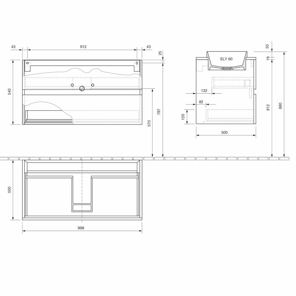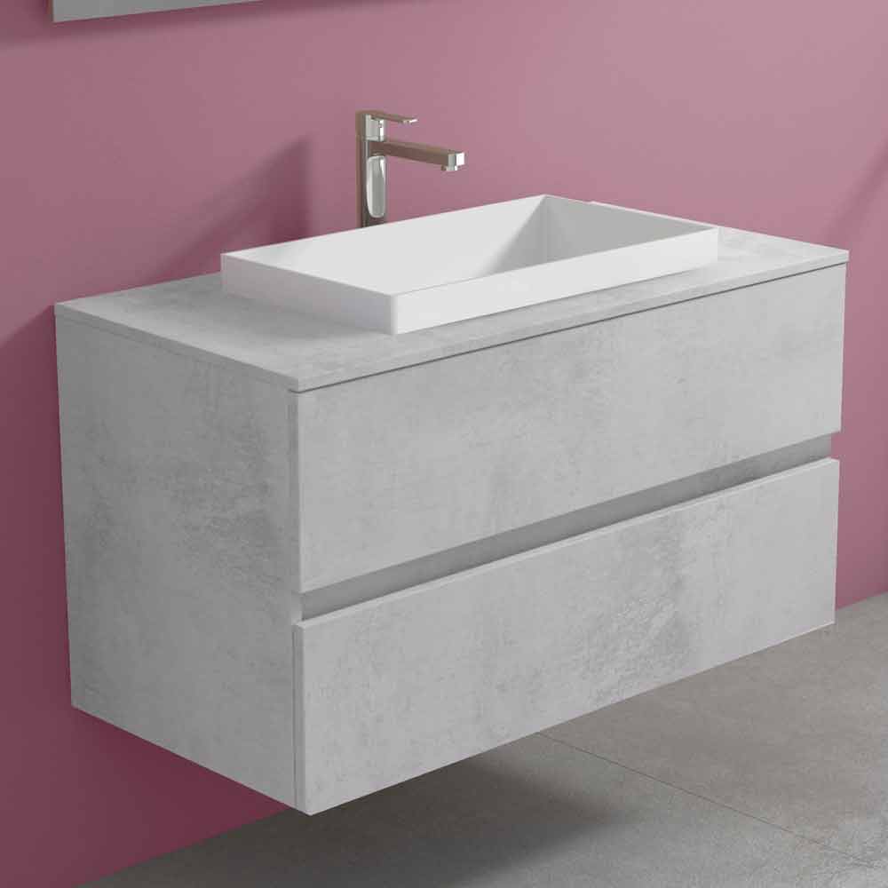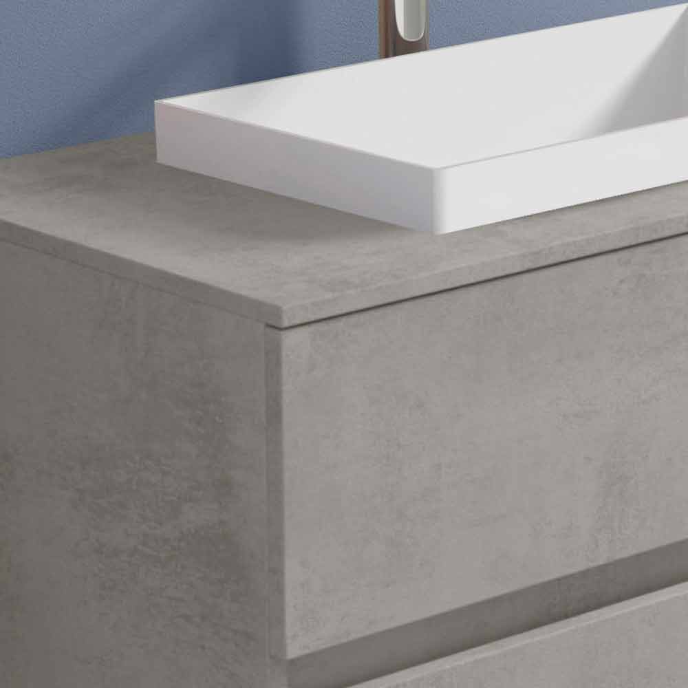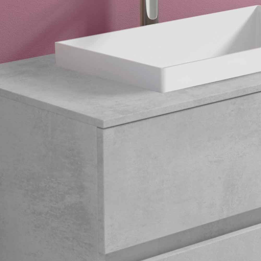 Podstawa umywalki ze standardową szufladą i wyprofilowaną szufladą wykonana jest z laminowanego i wodoodpornego włókna drzewnego hydro W 100 , aby zapewnić większą trwałość i zapobiec uszkodzeniu szafki w kontakcie z wodą.