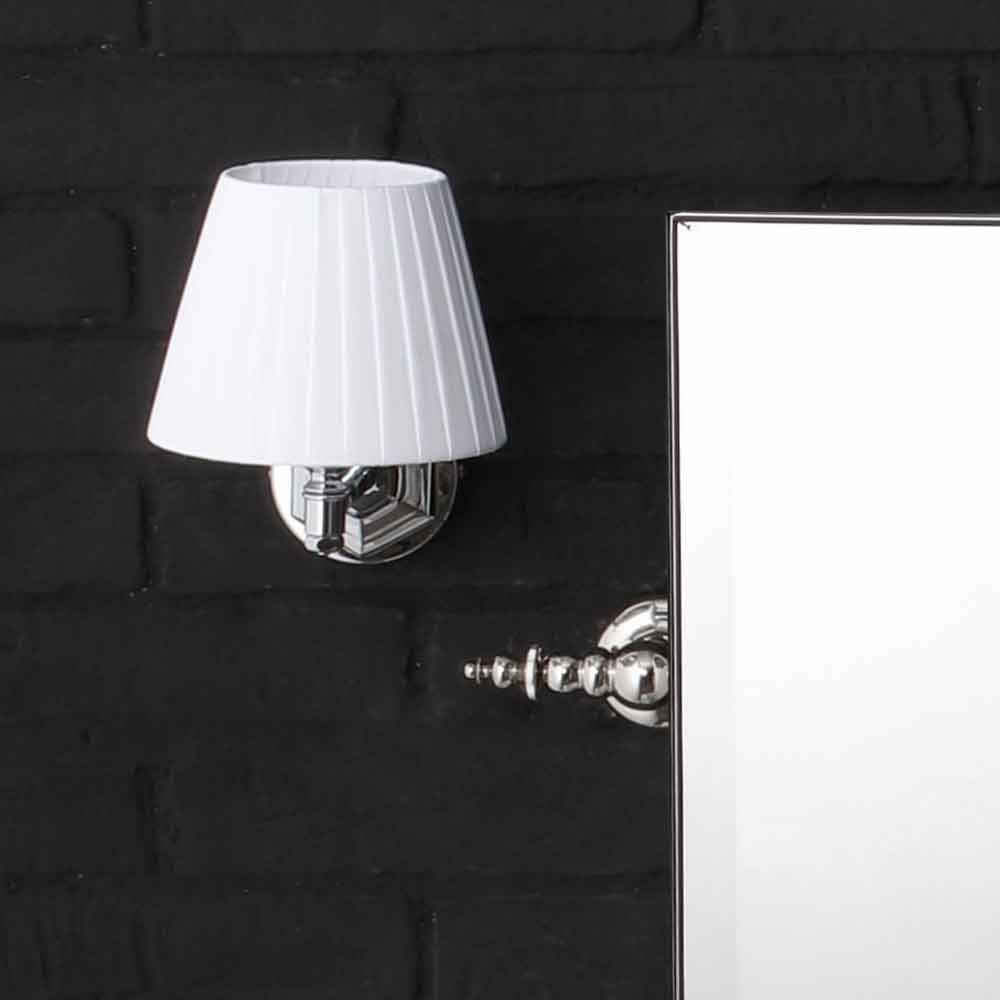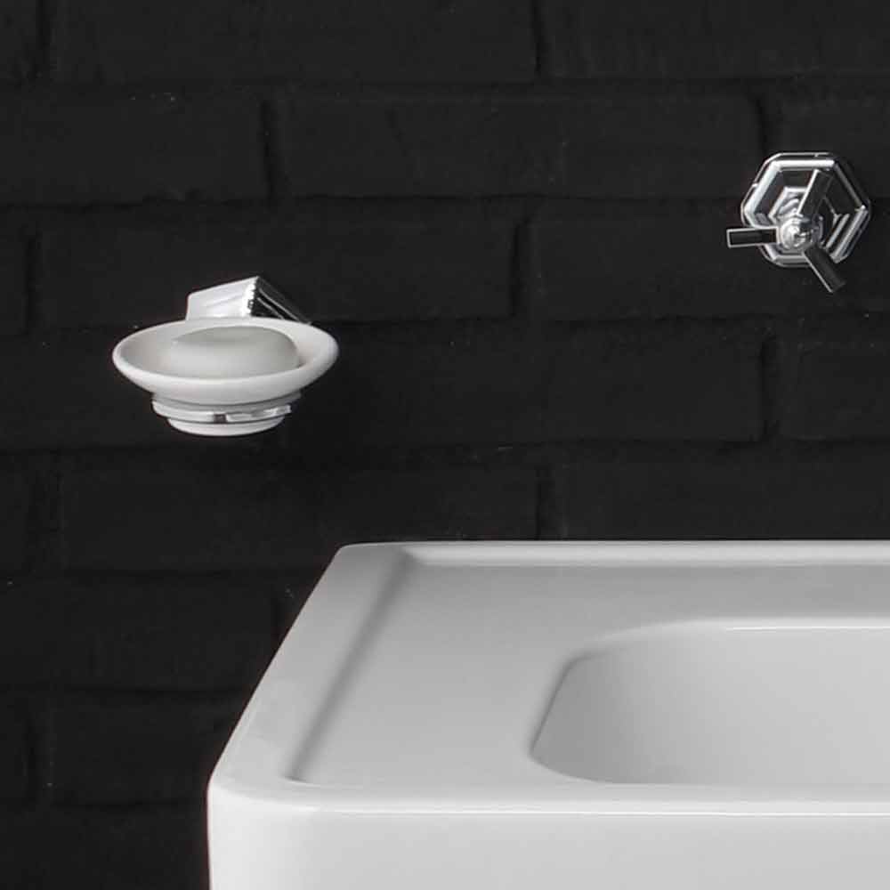 Serenity dopełnia i wzbogaca obecność pięknej i eleganckiej ceramicznej mydelniczki ściennej z chromowanymi detalami i szczoteczki do zębów w tym samym designie, a wszystko to uzupełnione dwiema pięknymi aplikacjami lux z chromowanego mosiądzu i bawełnianego klosza.