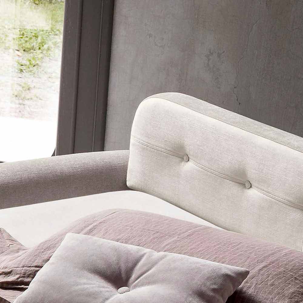 Podwójna sofa rozkładana z beżowej tkaniny z kontrastującym obramowaniem Made in Italy.