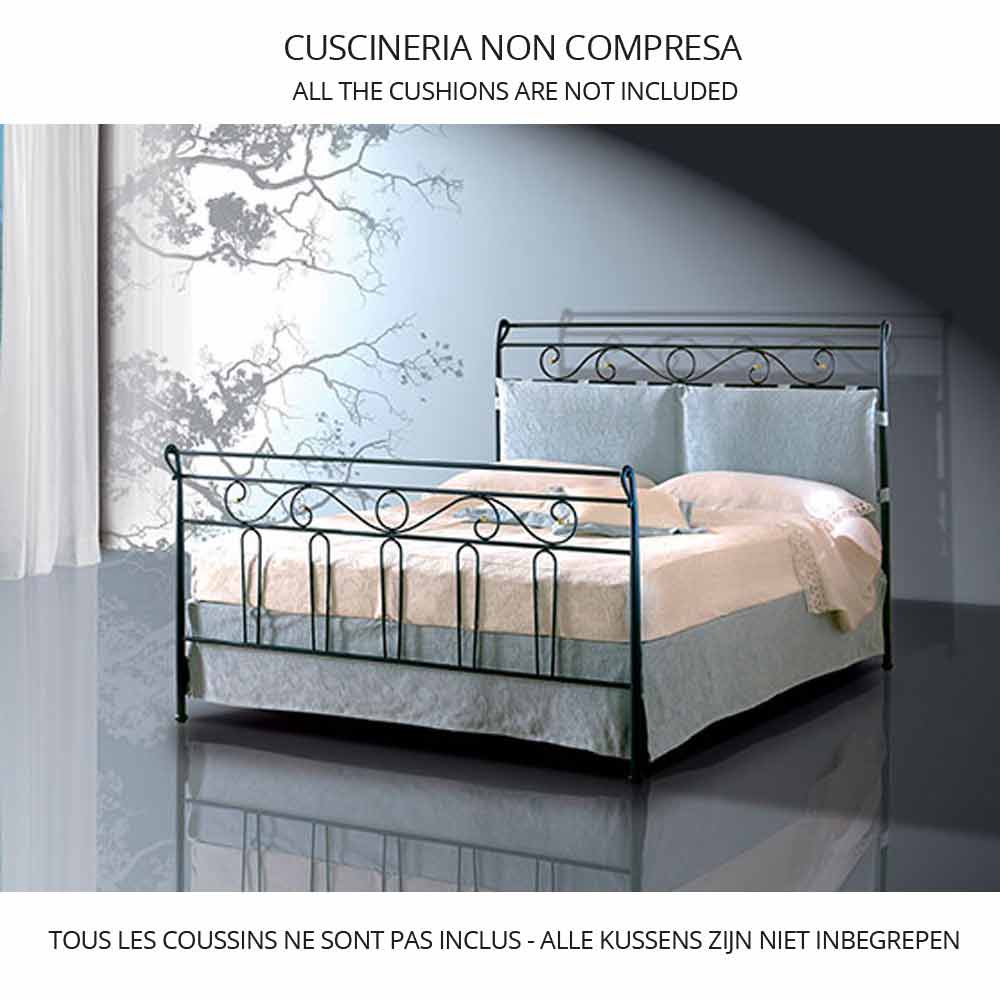 Łóżko Garofano z kutego żelaza w wariancie DOUBLE HEADBOARD WITH BED FRAME wymaga wstawienia stelaża łóżka 160 X 190, który musi być osadzony na stelażu łóżka. W przypadku szczególnych potrzeb związanych z dopasowaniem fizycznym, połączeniem z istniejącymi stelażami łóżka lub po prostu estetyką, ten model, dzięki naszej rzemieślniczej produktywności, można modyfikować pod względem wysokości, długości i szerokości.