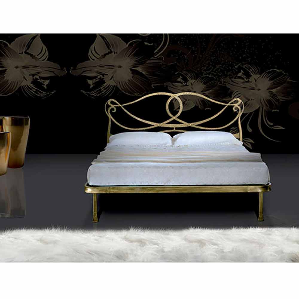 Podwójne łóżko Orchidea z kutego żelaza, ręcznie wykonane we Włoszech .