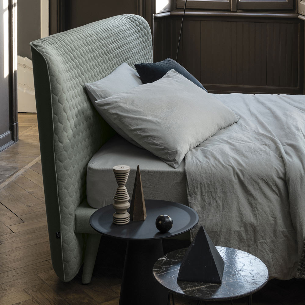 Nowoczesne łóżko podwójne z ozdobnym wezgłowiem Corolle firmy Bolzan