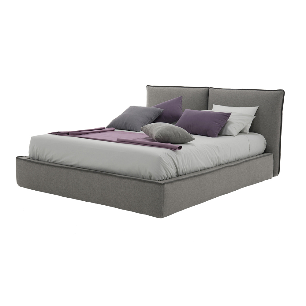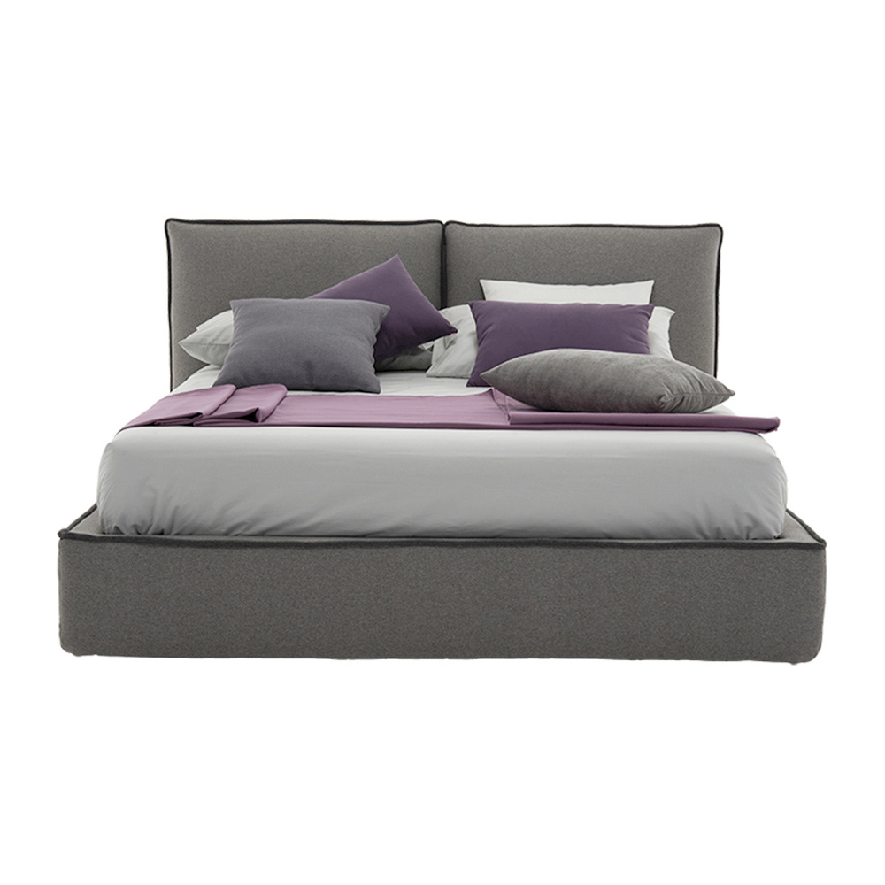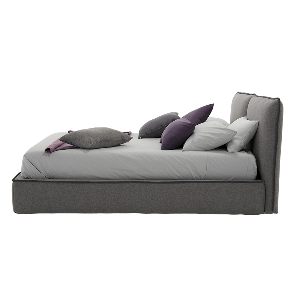 Wysokiej jakości podwójne łóżko tapicerowane tkaniną lub ekoskórą, ręcznie robione we Włoszech ze schowkiem.