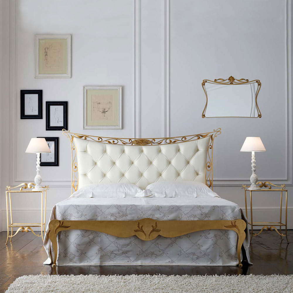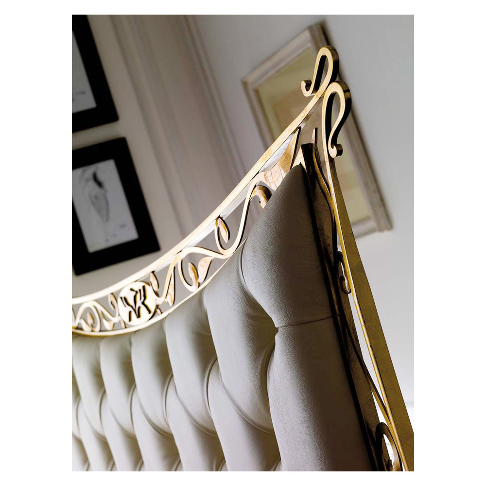 wyściółką z prawdziwej skóry w wykończeniu śnieżnobiałym. Produkt o klasycznym i ponadczasowym stylu, robi ogromne wrażenie wizualne i scenograficzne. Dzięki tym cechom udaje mu się stworzyć w sypialni niepowtarzalną i sugestywną atmosferę. Komfort i wygodę tej konstrukcji gwarantuje doskonała jakość materiałów użytych do jej budowy.