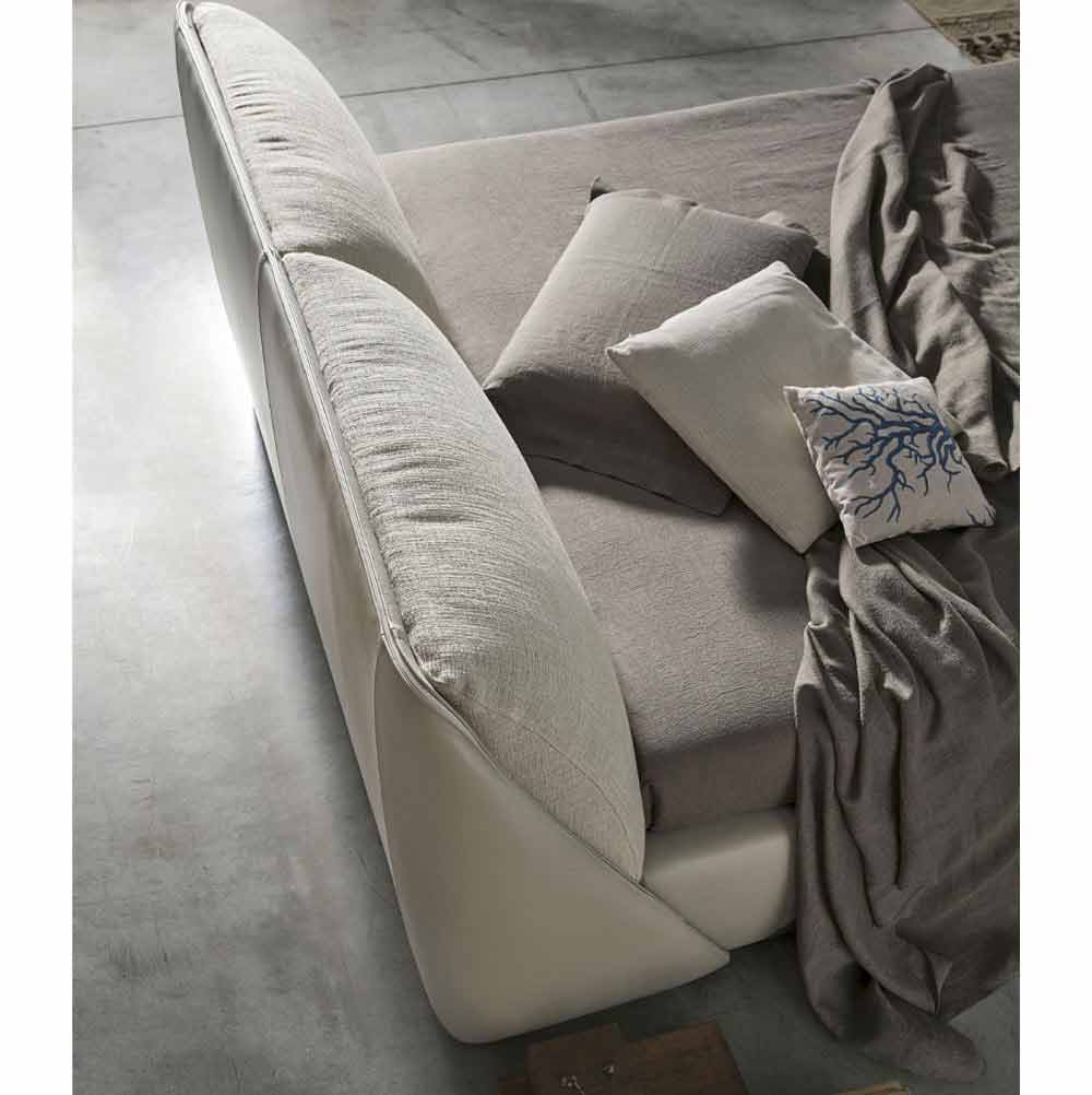 Podwójne łóżko wykonane we Włoszech z wewnętrzną ramą ze sklejki topolowej pokrytej poliuretanem i podszewką z włókna poliestrowego, zagłówkiem z gumy poliuretanowej i dakronu