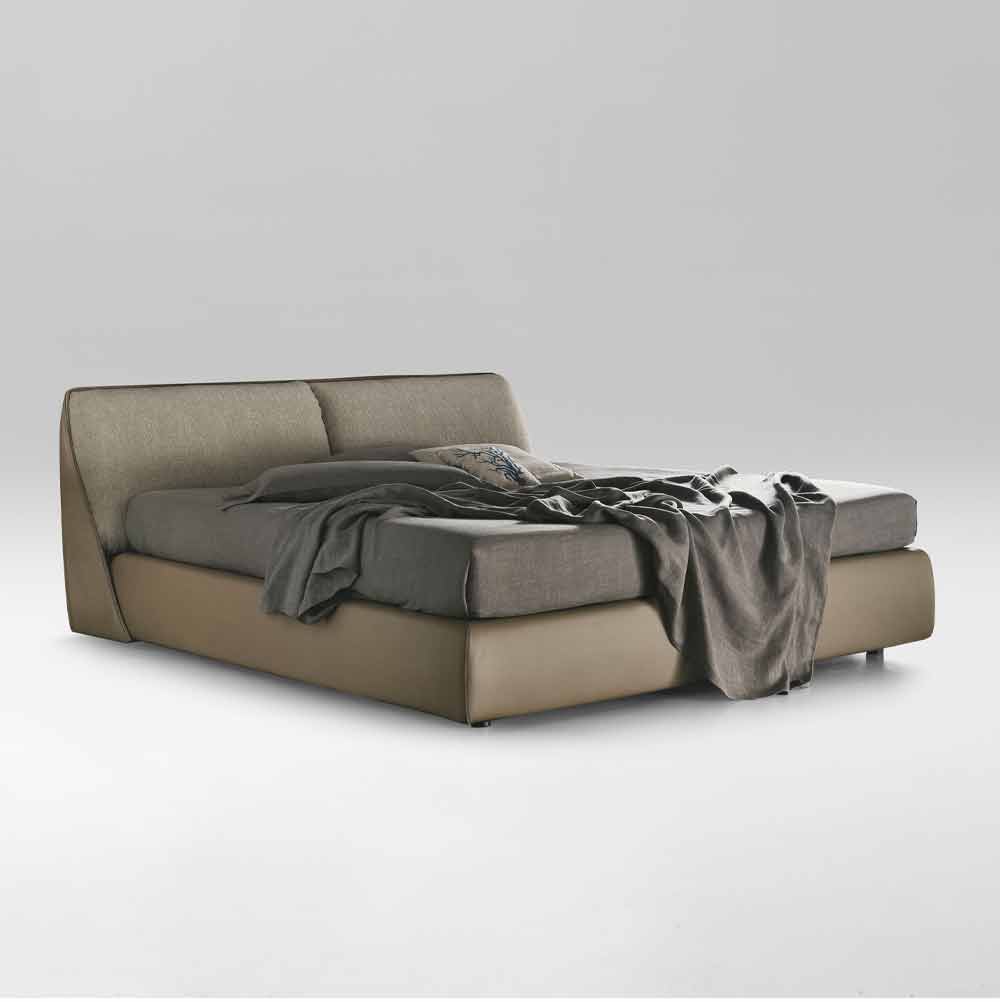 Łóżko podwójne tapicerowane o podstawie L170xG200 cm z dwukolorową tapicerką Wyprodukowano we Włoszech.