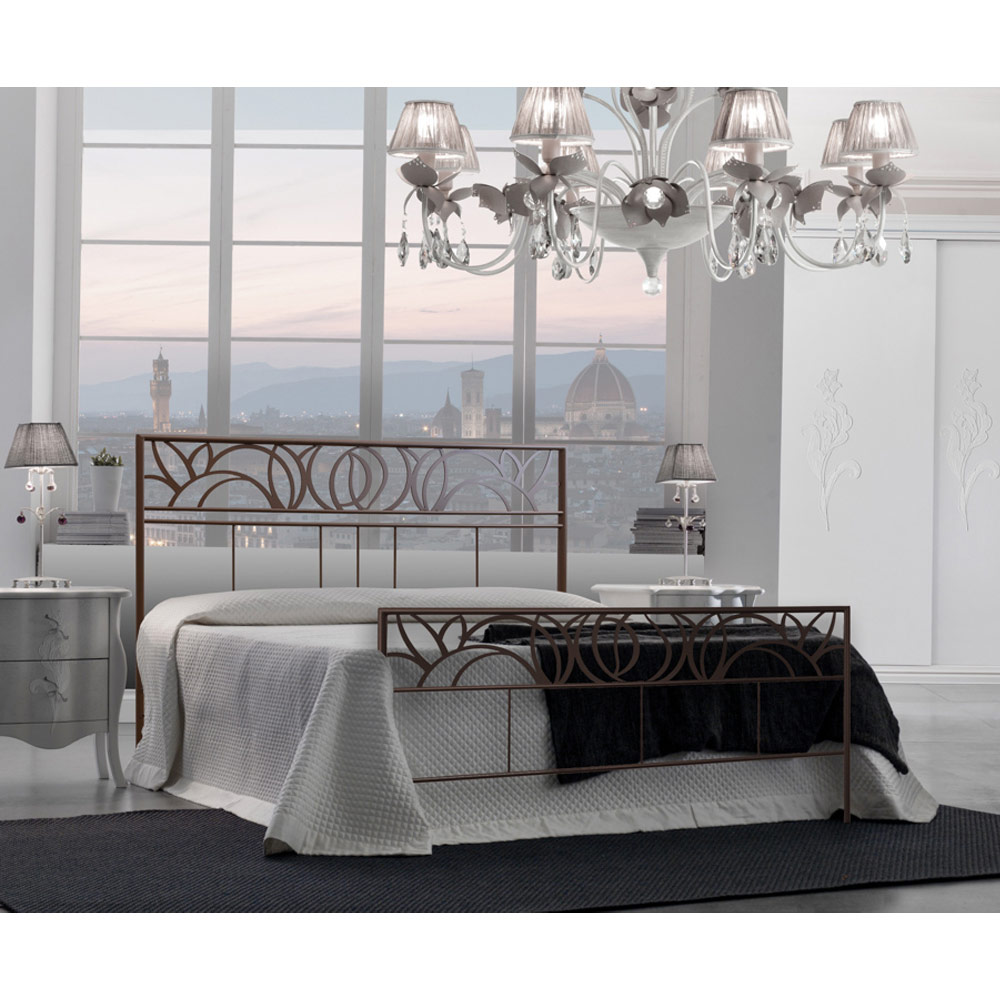 Podwójne łóżko z dopasowanym żelaznym zagłówkiem i podnóżkiem Wyprodukowano we Włoszech