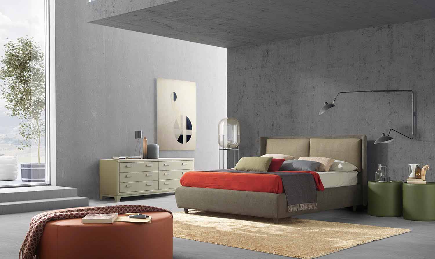 Łóżko dwuosobowe z pojemnikiem na drobiazgi Kate firmy Bolzan, wyprodukowane we Włoszech