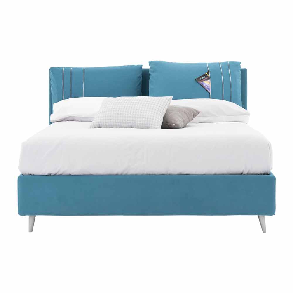 Podwójne łóżko z pojemnikiem pokrytym wyjmowanym materiałem dostępne z zagłówkiem w trzech wariantach Made in Italy.