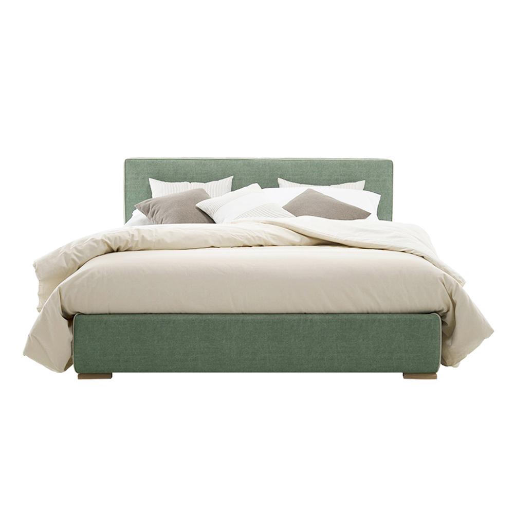 Luksusowe podwójne łóżko ze schowkiem, wykonane ręcznie we Włoszech z ekoskóry lub tkaniny.