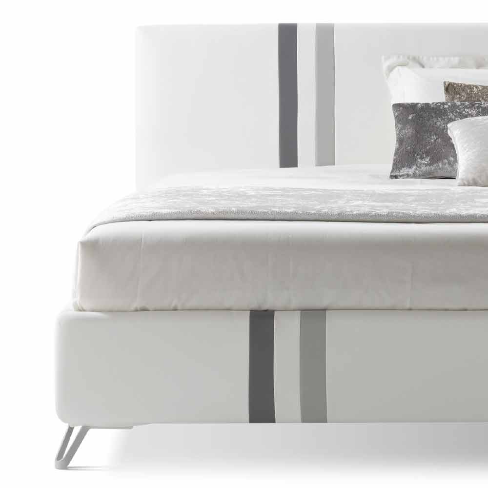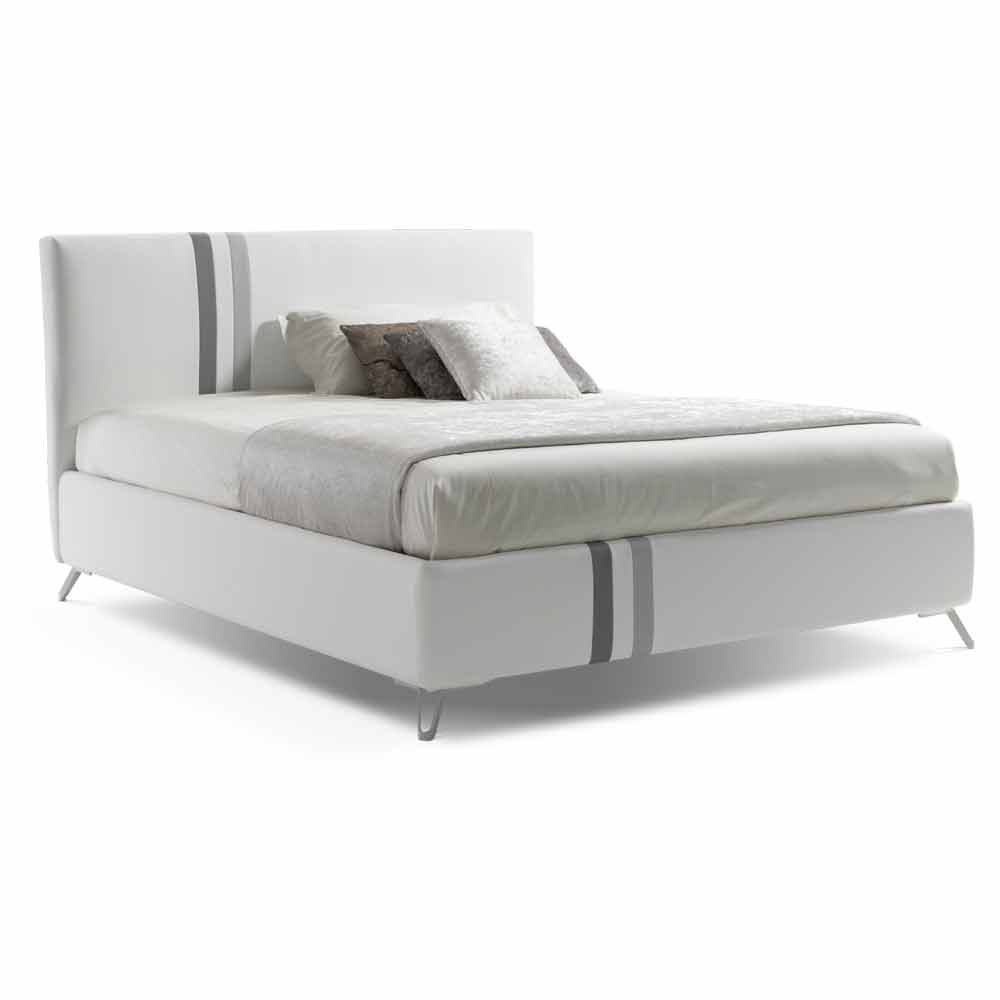 Luksusowe, nowoczesne łóżko podwójne ze skrzynią, ręcznie wykonane we Włoszech z eko-skóry.