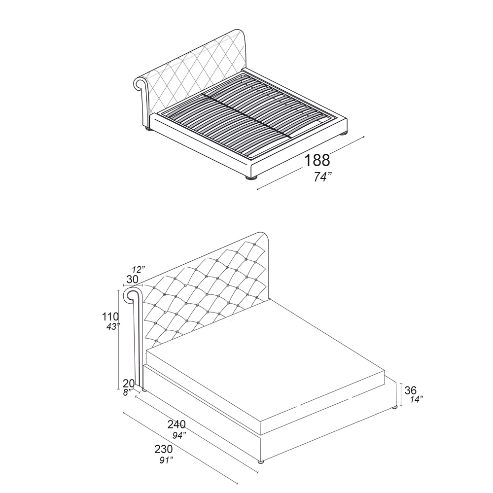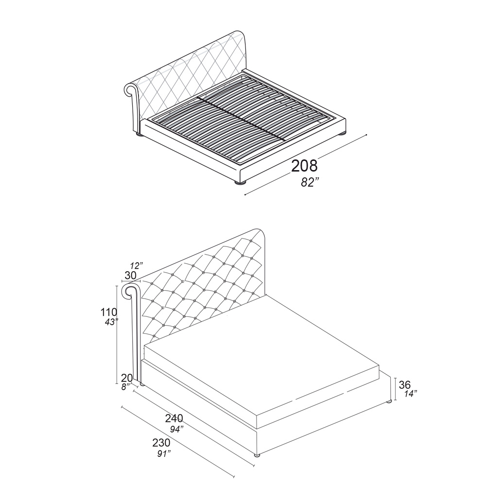Łóżko jest eleganckim przykładem włoskiego rzemiosła. Dzięki solidnej ramie i wyściełanemu zagłówkowi, który obiecuje wygodę, łóżko to zaprasza do relaksu. Wysokiej jakości tapicerka skórzana w połączeniu z dopasowanymi detalami podkreśla wyrafinowany wygląd łóżka. Cienkie i wyrafinowane nogi dodają odrobinę nowoczesności do klasycznego projektu. Jest to łóżko, które łączy tradycję i nowoczesność, oferując najwyższy komfort i estetykę, która pięknie uzupełni każde współczesne lub tradycyjne środowisko do spania.