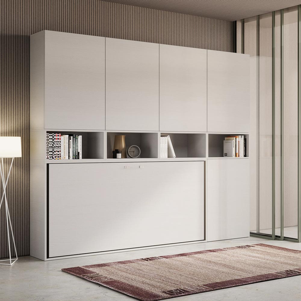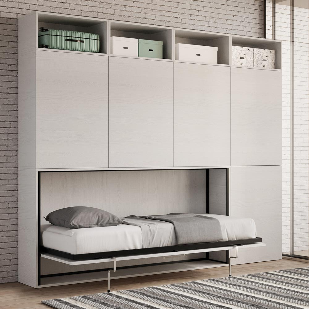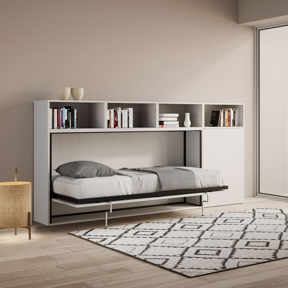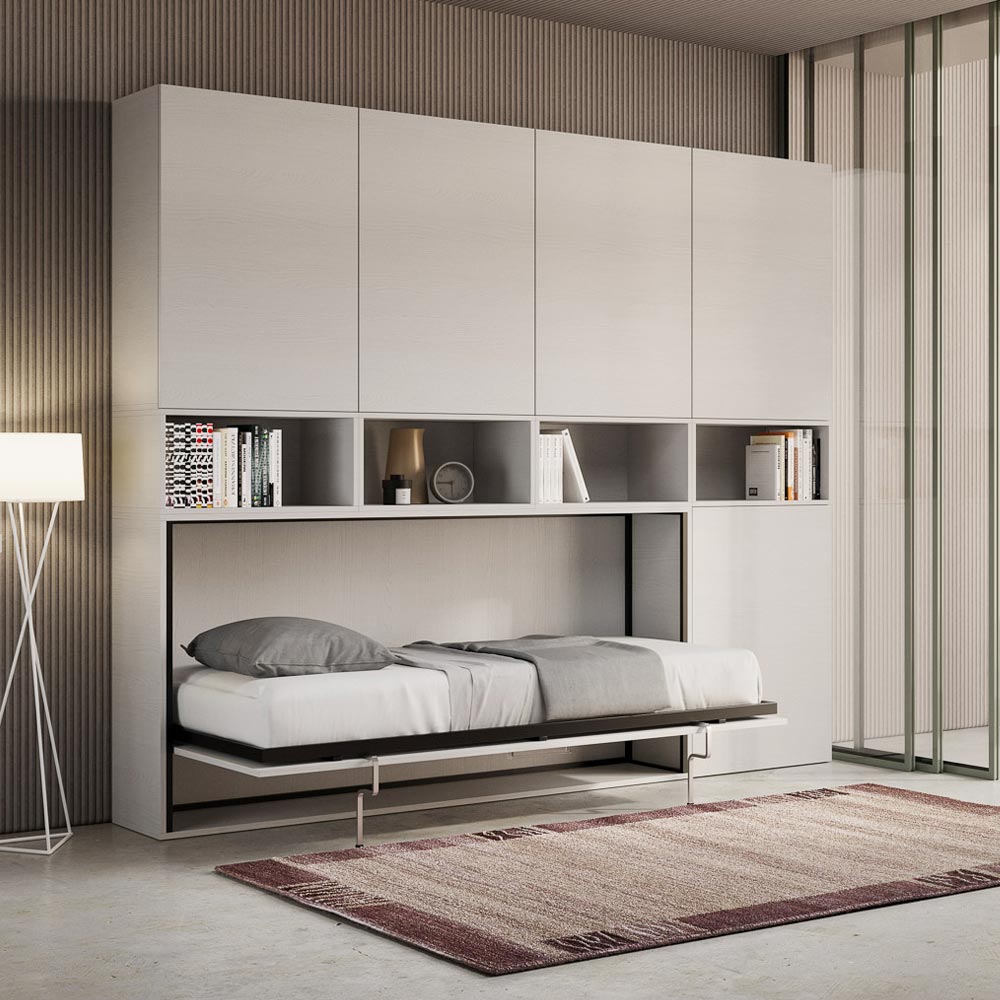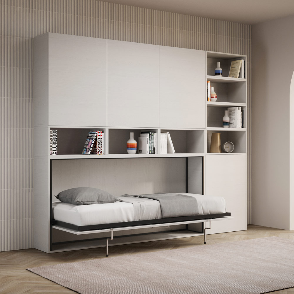 Pojedyncze łóżko składane, które integruje się z kompozycją mebli Made in Italy