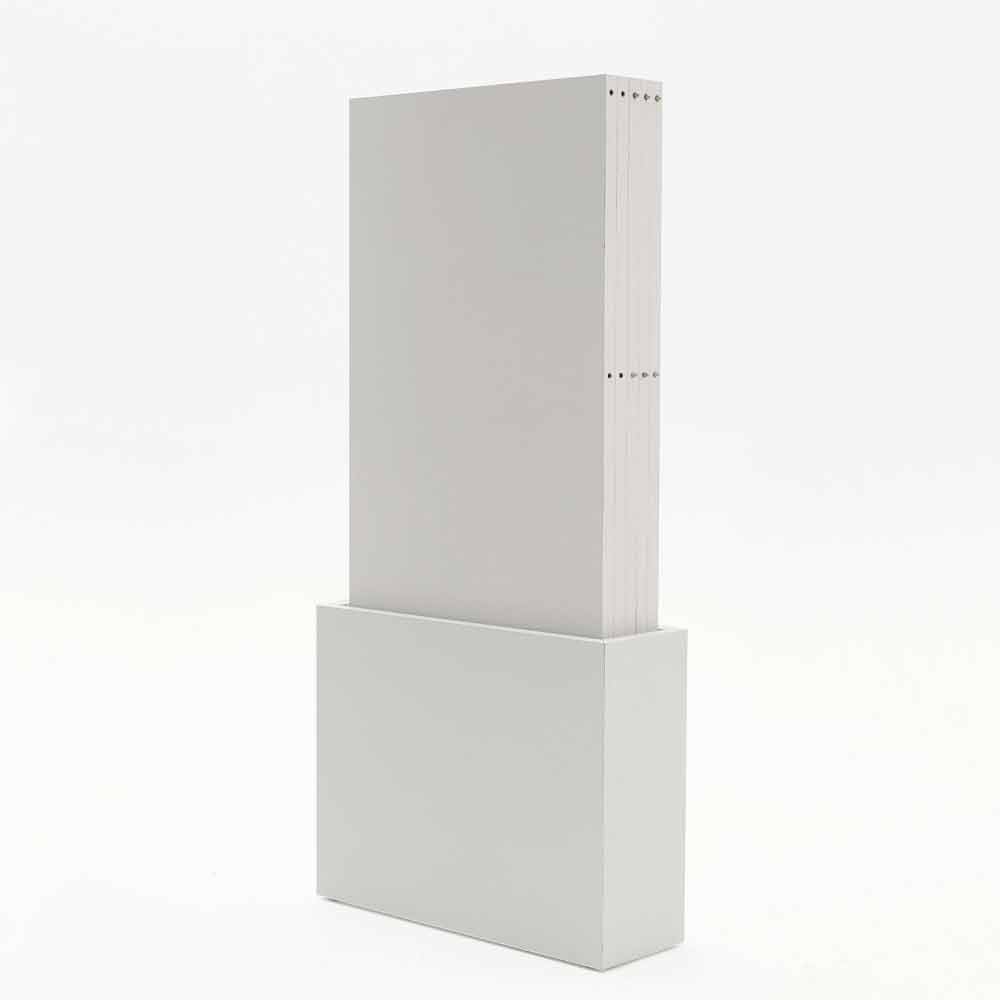 Columbus to nowoczesna skrzynia do przechowywania w kształcie skrzydła, wykonana z panelu melaminowego, o białych porach.