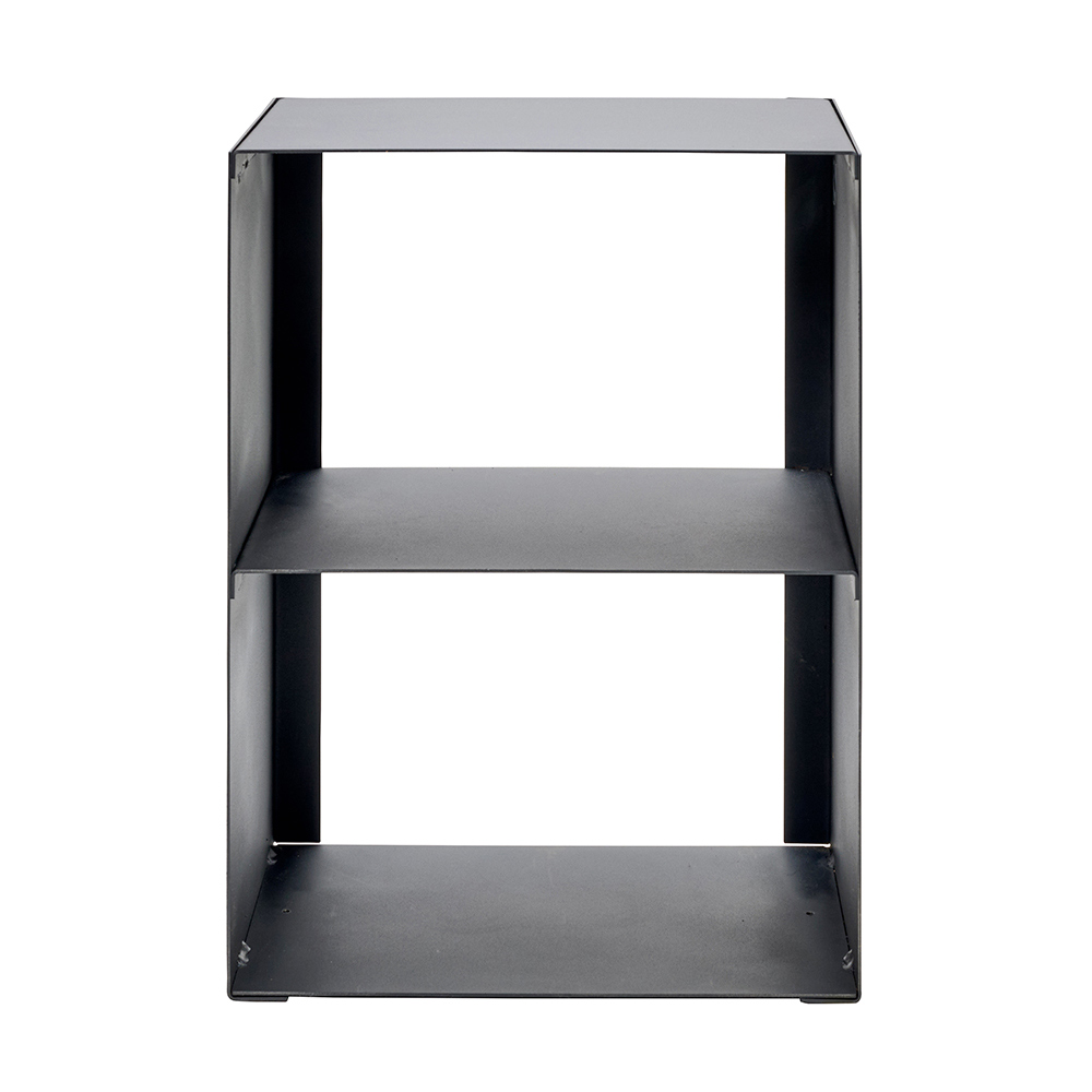 Konstrukcja jest podzielona na dwie komory, które pozwalają oddzielić drewno od innych materiałów rozpałkowych, takich jak gałązki lub szyszki sosnowe, zapewniając skuteczną i estetyczną organizację. Sześcienny kształt i minimalistyczne wykończenie pozwalają temu elementowi idealnie dopasować się do każdego otoczenia, od rustykalnego domu po bardziej współczesną przestrzeń.