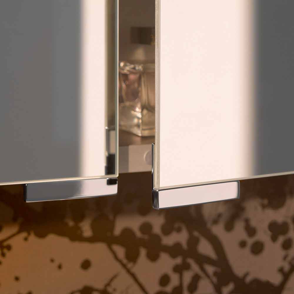 szklanych półkach o regulowanej wysokości (3 na każde drzwi), idealnych do optymalnego rozmieszczenia przedmiotów i akcesoriów. W komplecie z