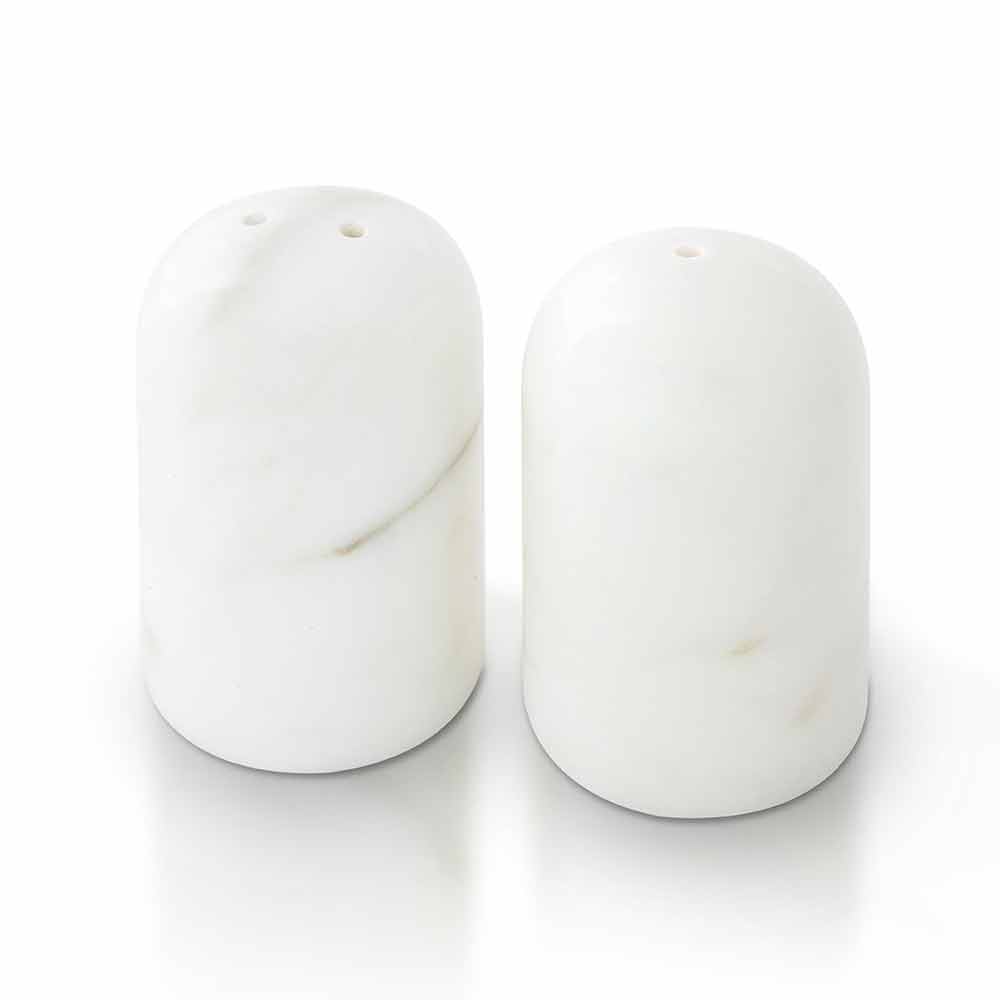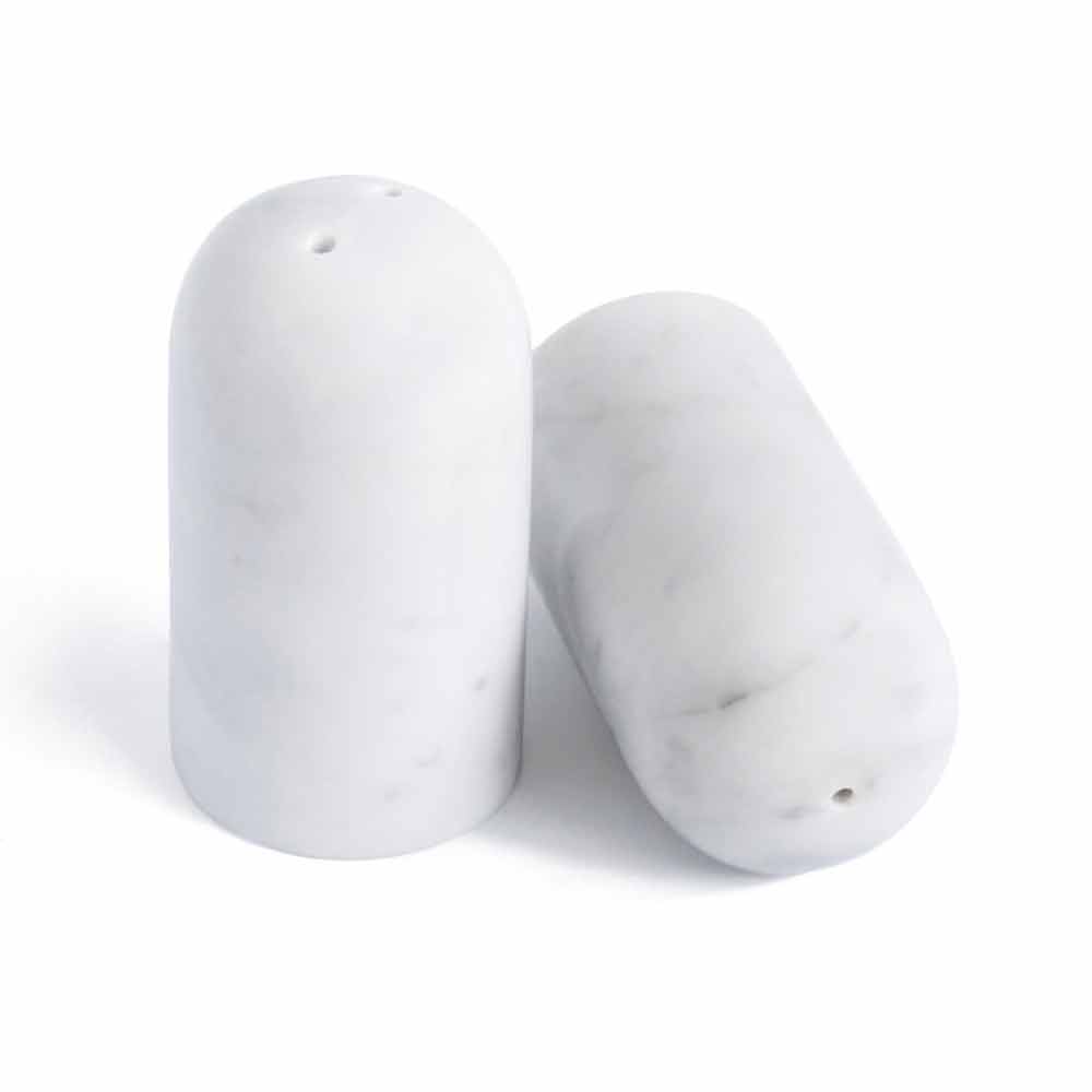 Te kuchenne pojemniki na sól i pieprz charakteryzują się wykorzystaniem białego marmuru z Carrary i czarnego marmuru Marquinia i należy je uważać za unikalne elementy, ponieważ każdy użyty blok marmuru różni się od pozostałych żyłkami i odcieniami.