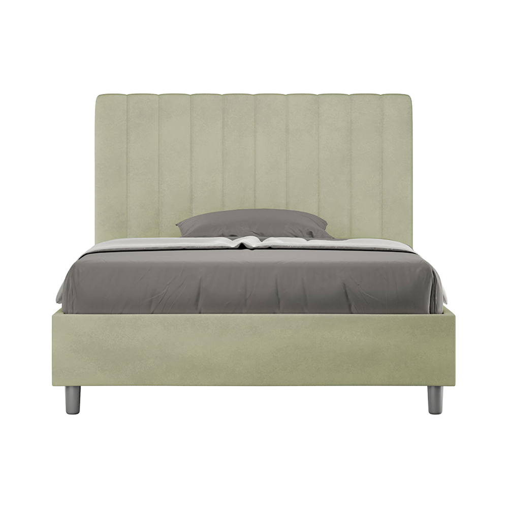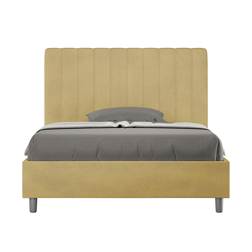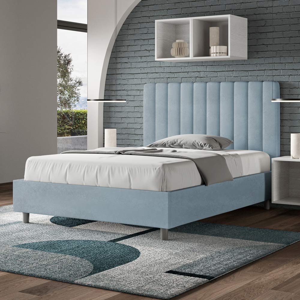 Łóżko małżeńskie o wymiarach 120x200 cm, wykonane z płyty wiórowej i pokryte mikrofibrą , w całości wyprodukowane we Włoszech. To łóżko typu queen-size z tapicerowaną ramą jest idealne dla osób poszukujących wyrazistego, ale nie przytłaczającego elementu wyposażenia. Łóżko charakteryzuje się minimalistycznym wezgłowiem z delikatnym pikowaniem o symetrycznych pionowych liniach , które doskonale wpasowuje się w każde wnętrze, zarówno nowoczesne, jak i klasyczne.